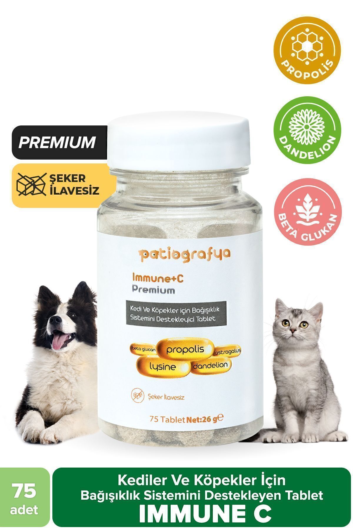 patiografya Premium Immune C Tablet Supporting the Immune System for Cats and Dogs
