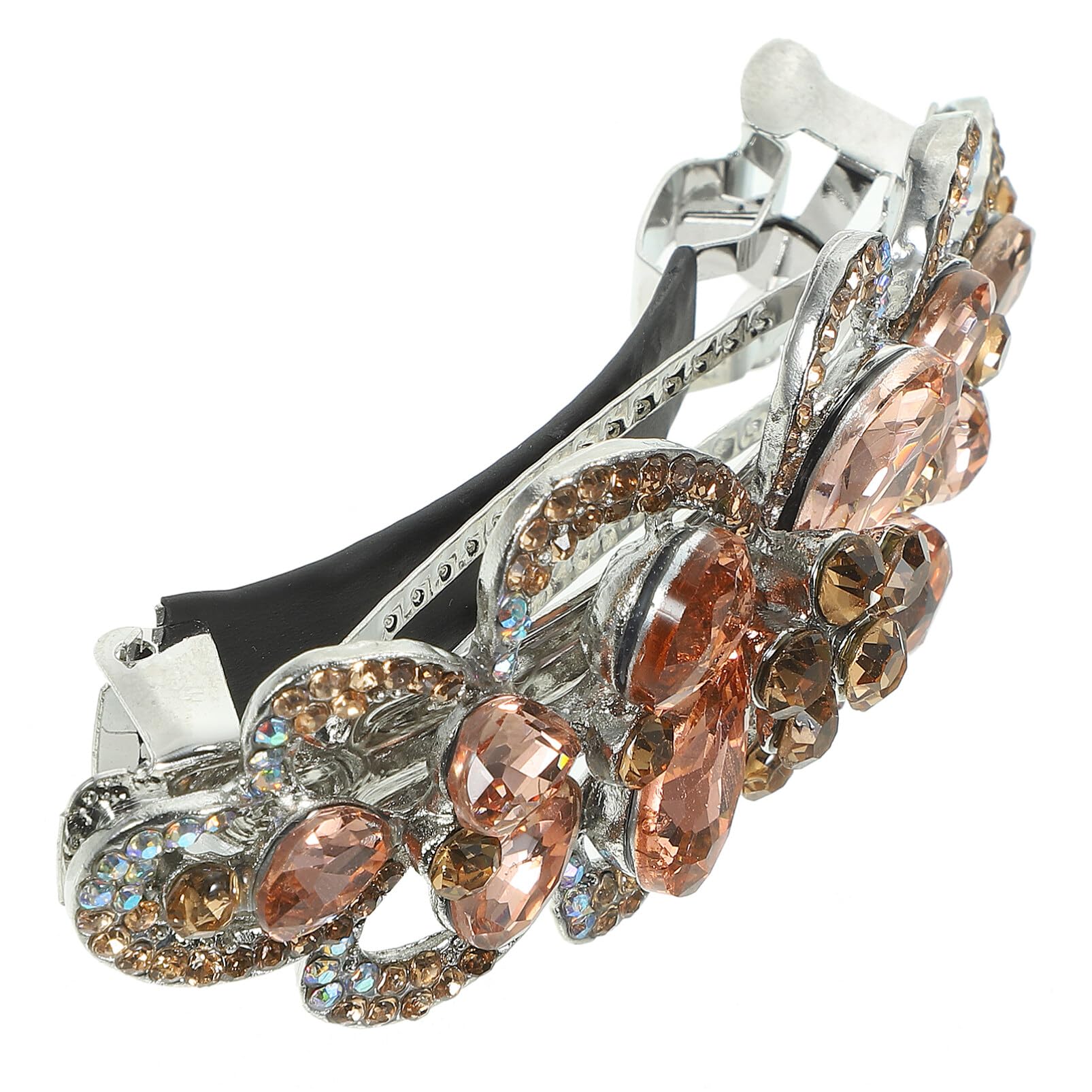 this hair clip features a stunning rhinestone decoration, adding a stylish and luxurious touch to your overall look. the elegant color of this hair clip adds a touch of luxury and sophistication to your overall styling. specifically designed for women, this hair clip is suitable for various hairstyles, allowing you to create different looks effortlessly. the secure spring clip design ensures that the hair clip stays in place and prevents any slippage. this rhinestone barrette can be worn in daily life, parties, weddings, and more, making it a perfect addition to any occasion.