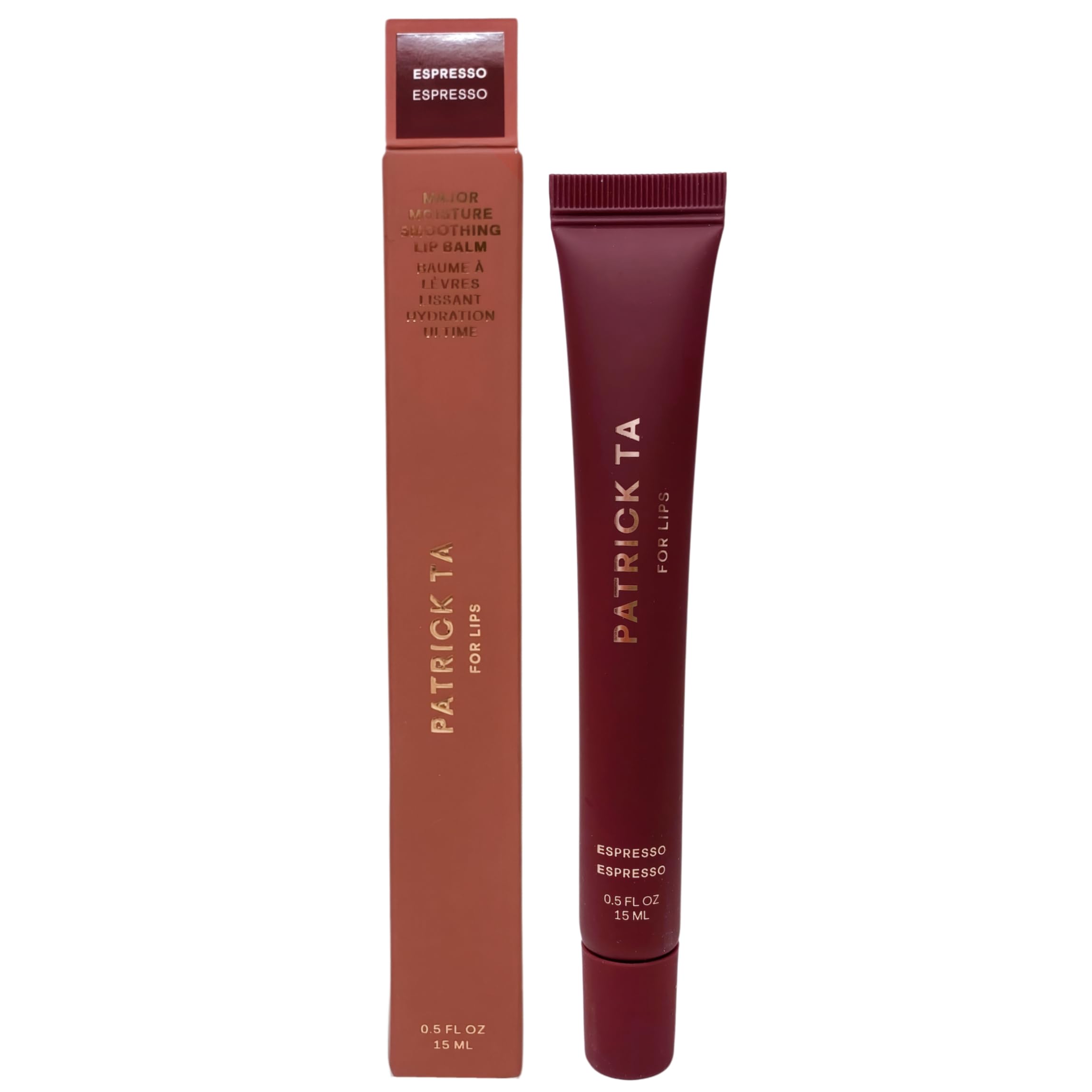 Patrick Ta Major Moisture Smoothing Lip Balm - Espresso (0.5 fl oz 15 mL). What it is: A high-shine, sheer lip balm with a rich, cushiony texture and moisturizing ingredients that nourish lips for a softer, smoother pout. What Else You Need to Know: Sheer shade pair with plumping peptides and bakuchiol for softer, smoother, luxurious lips. The coveted, cushiony texture feels rich but never heavy, which makes it comfortable and wearable for any occasion. The mask-like feel meets a gloss-like finish, elevated by custom gourmand flavors.