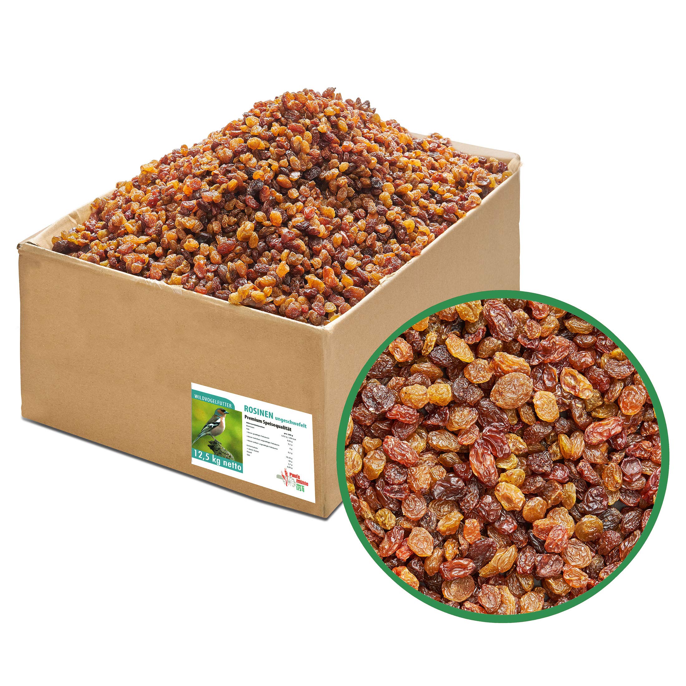 Paul s Mühle Rosinen, ungeschwefelt in Speisequalität, Wildvogelfutter für Insekten- und Früchtefresser, 12,5 kg 12.5 kg (1er Pack)