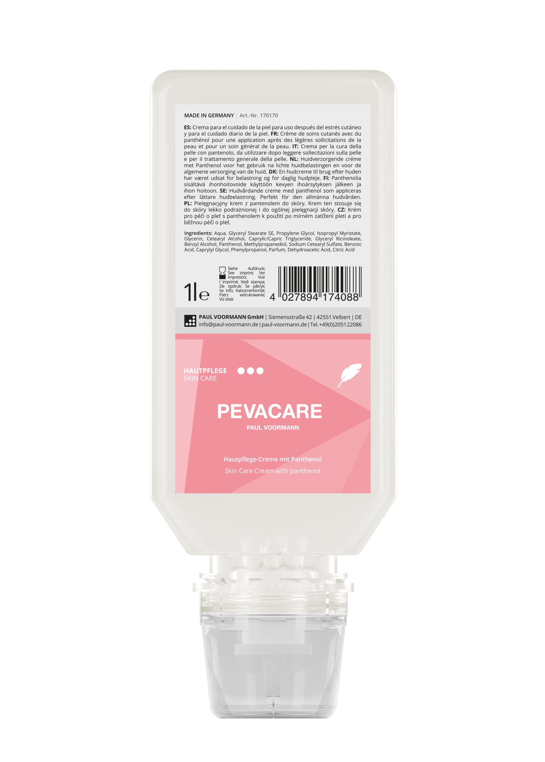 Paul Voormann Pevacare - Panthenol Skin Care Cream - 1L Squeeze Bottle - Pack of 6