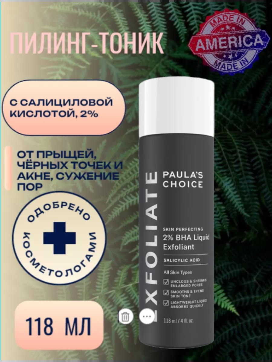 | Комплектация | пилинг тоник с салициловой кислотой 2% BHA EXFOLIANT, 30 мл |