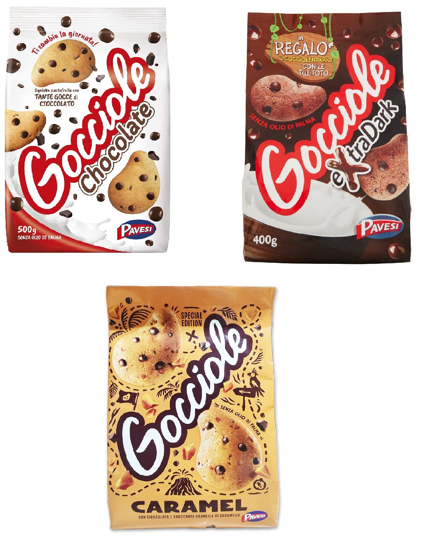 Barilla Pavesi Gocciole Lot de 3 biscuits italiens avec gouttes de chocolat noir