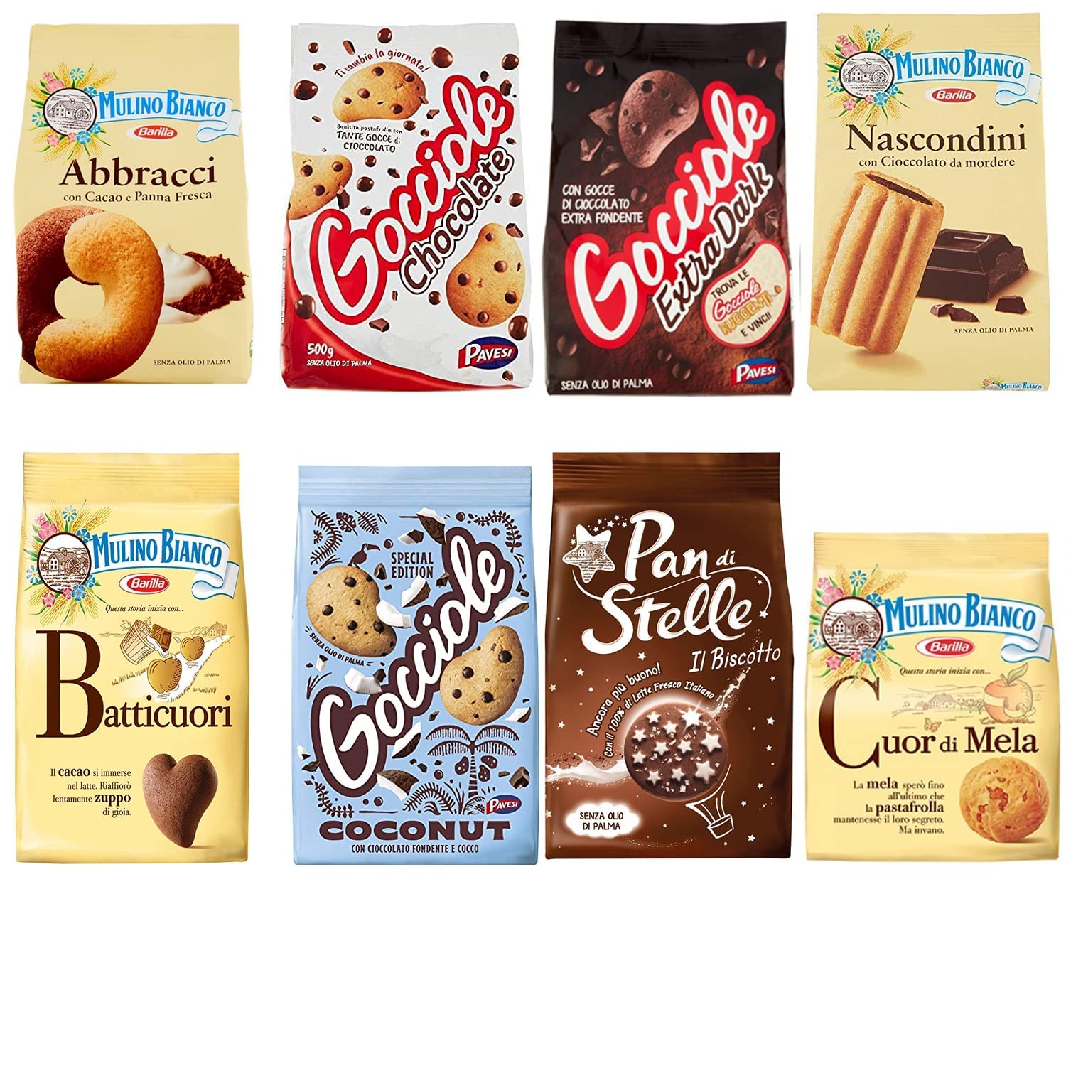 Pavesi Pavesi Barilla Biscuits Gocciole Test Kit Chocolate Dark Coconut Biscuits + Mulino Bianco Pan di stelle Abbracci Nascondini Cuori di Mela Batticuori 350 g