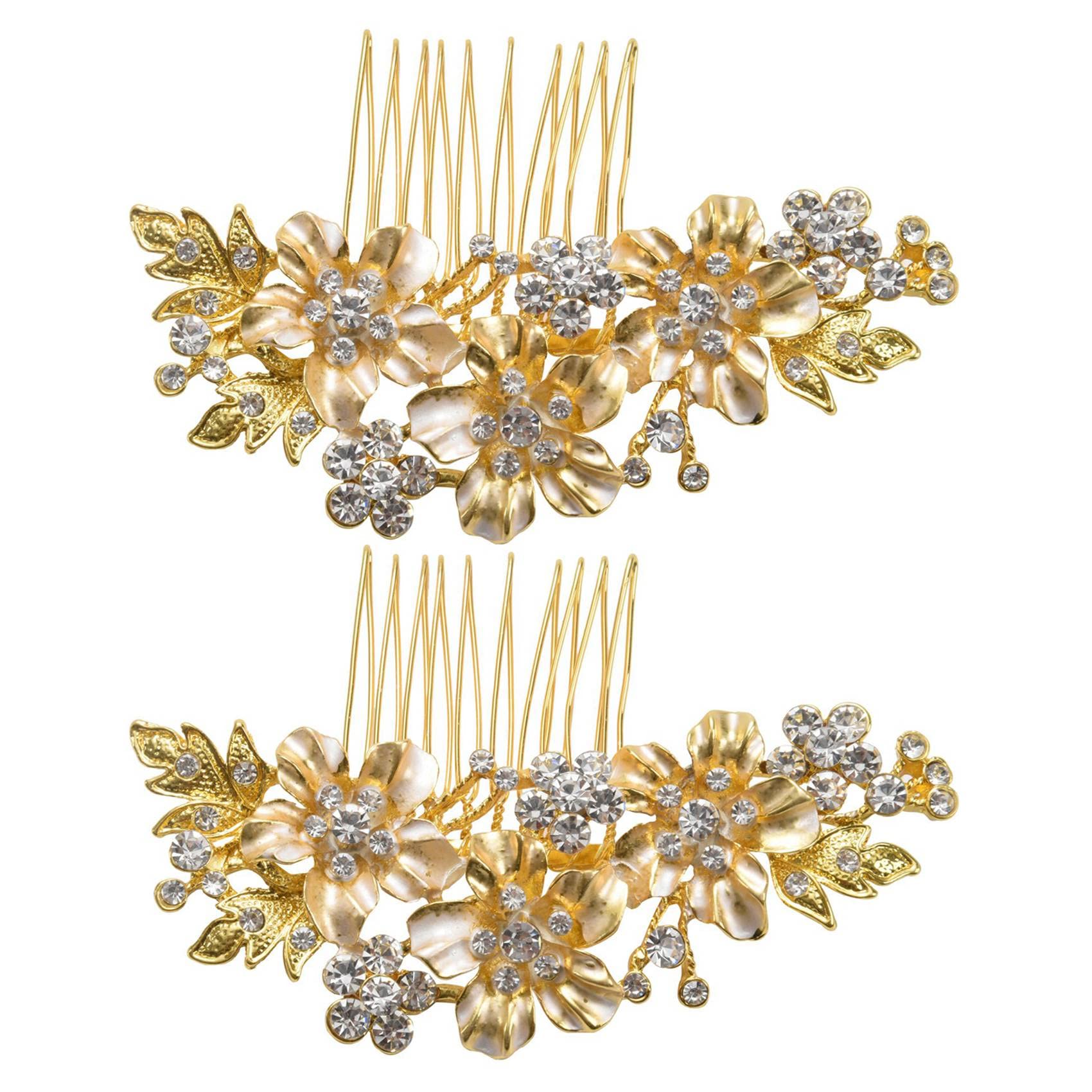 Pavewood color: Gold Material: Alloy + Imitation Crystal Size: 10.3cm x 7cm Package includes: 2 x Bridal hair accessories Only the above package content, other products are not included. Note: Light and different displays may cause the color of the item in the picture a little different from the real thing. The measurement allowed error is +/- 1-3cm. INGREDIENTS Alloy + Imitation crystal