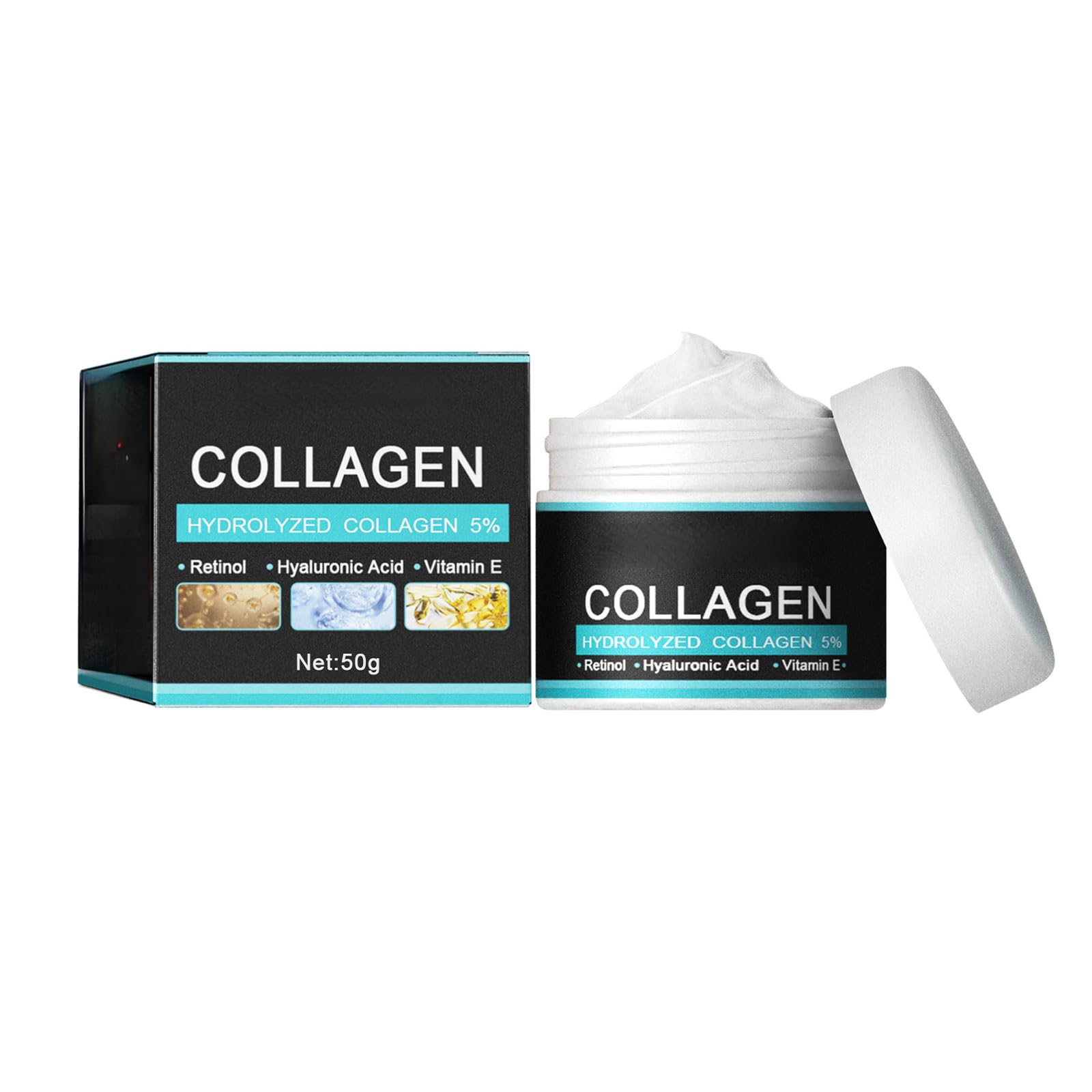 Packaging size: 5.3 5.3 4.6cm. Ingredients: Mineral Oil, Hydrolyzed Collagen, Glyceryl Stearate. Gross weight: 81g. Keywords: Anti-Aging Cream. Product name: Men's facial cream (50g). Net Content: 50G.