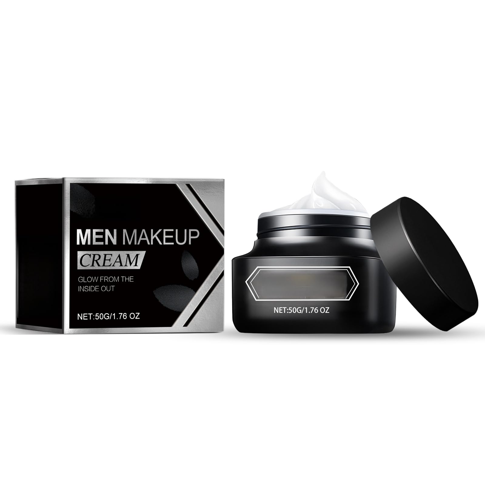 Net content: 50g Product name: Men's makeup cream Keywords: Facial Care Gross weight: 98.1g Ingredients: Triethanolamine, Titanium Dioxide Packaging size: 5.4 5.4 4.7cm Product size: 5.2 5.2 4.5cm Box size: 56 36 21.5cm Packing quantity: 280 pieces Weight of one box: 22.59kg Shelf life: 3 years Storage method: Please store in a cool and shaded place