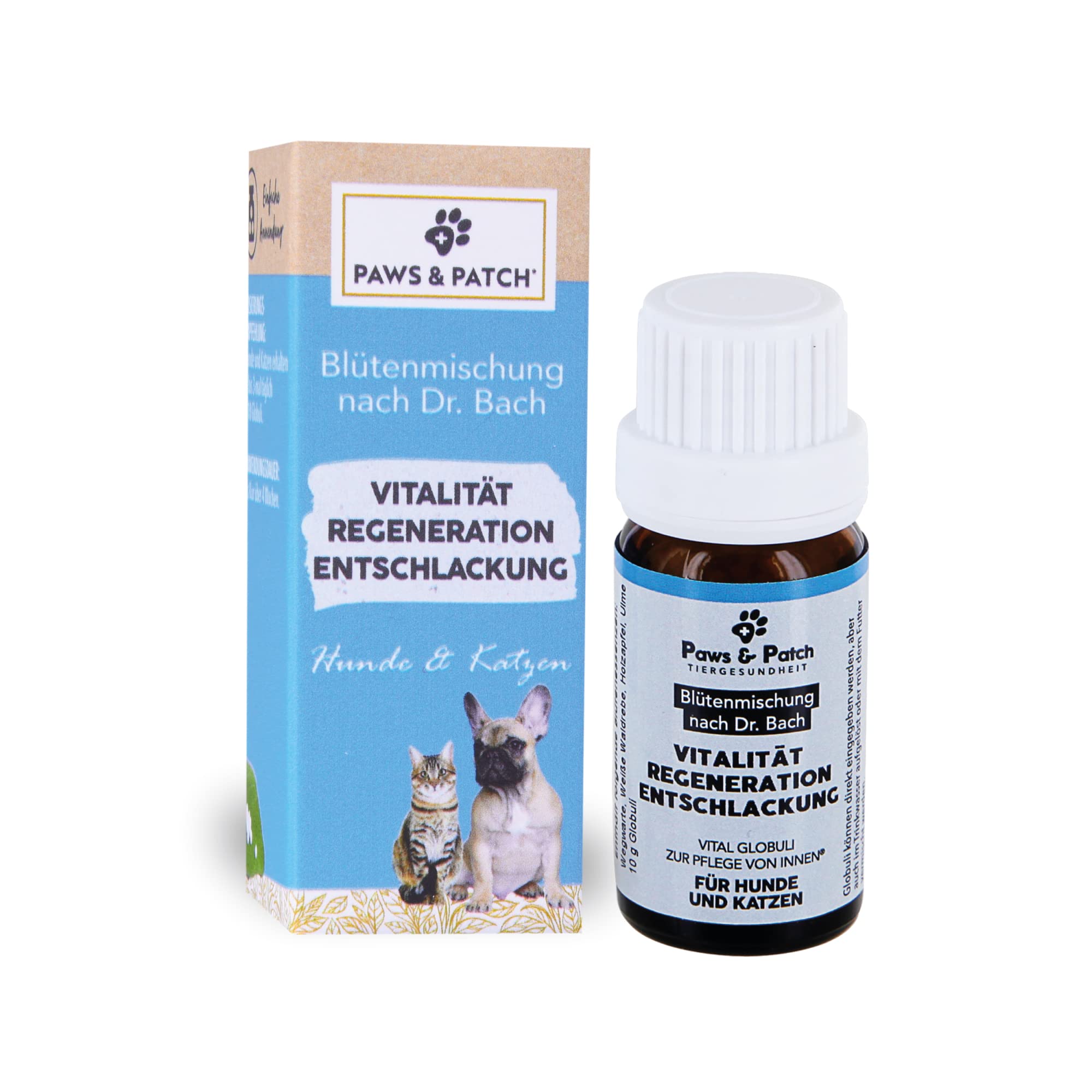 Paws&Patch VITALITÄT Regeneration ENTSCHLACKUNG Blütenmischung nach Dr. Bach für Hunde & Katzen 10g I Bachblüten Globuli für Detox-Kur