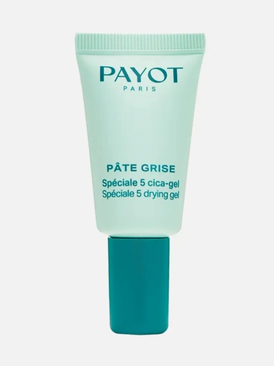 PAYOT facial gel with centella asiatica extract, meadowsweet extract, and probiotics dries out imperfections and reduces their marks.