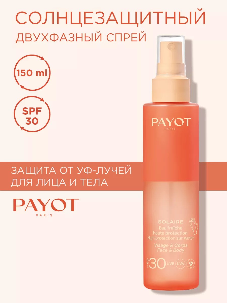 Солнцезащитное средство для тела и лица профессиональной косметики PAYOT с SPF30 обеспечивает эффективную защиту лица и тела в любое время суток, даже на влажной коже. Благодаря комплексу OCEAN+ он обеспечивает эффективную защиту от всех ультрафиолетовых лучей: UVB + UVA + длительного действия UVA, защищая, таким образом, от фотостарения, которое приводит к появлению морщин, тонких линий и темных пятен. Защита от солнца имеет водостойкую формулу благодаря пленке натурального происхождения. Вам понравится его ультрасвежая, легкая двухфазная текстура, которая создает эффект обнаженной кожи. Солнцезащитное средство имеет легкую текстуру, которая моментально впитывается, не оставляя жирной пленки на коже. Средство имеет приятный аромат с солнечными нотами.