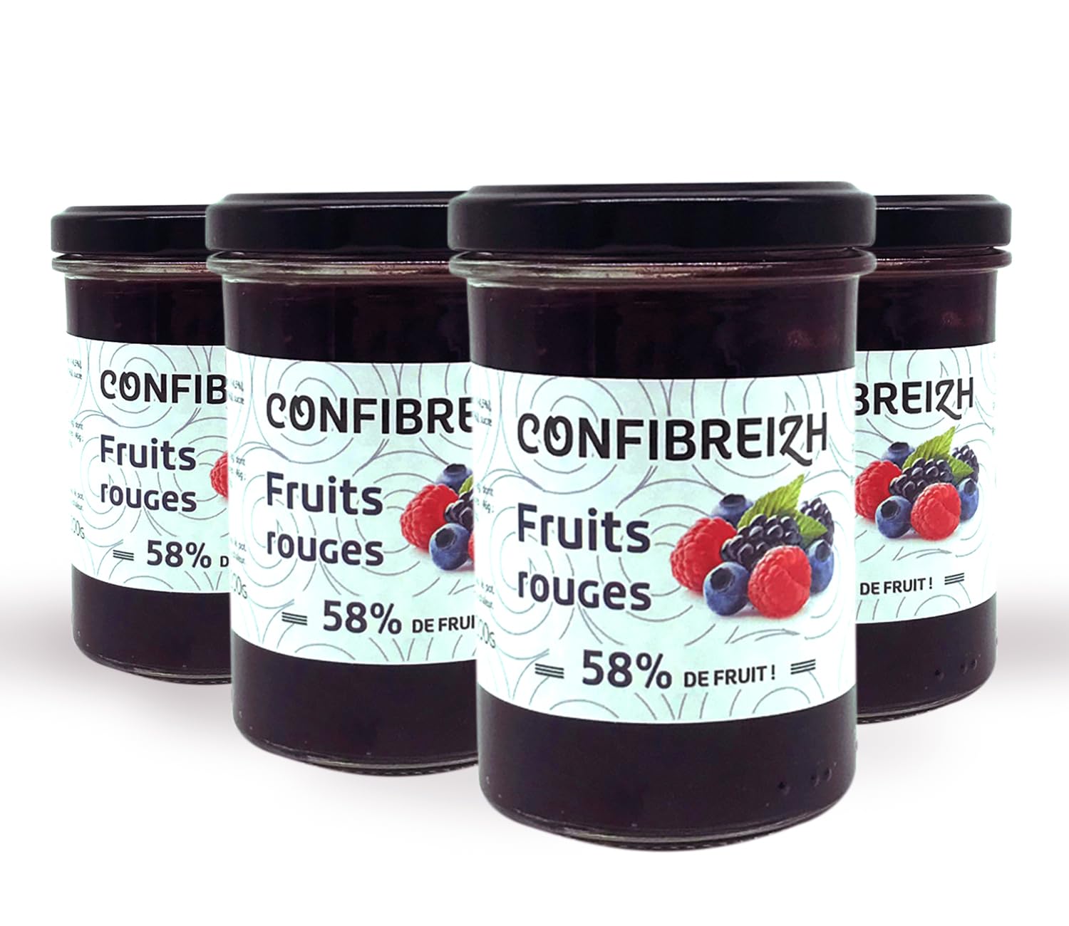 230g jars of red fruit jam - Traditionally made in a copper cauldron and rich in fruit (58 ) - Made in Brittany, France. INGREDIENTS fruit, sugar