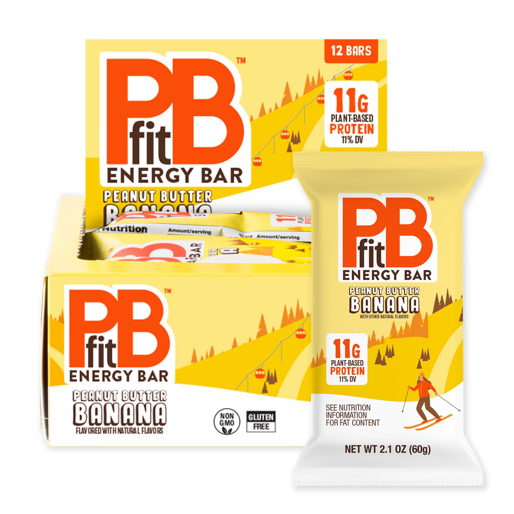 PBfit Peanut Butter Banana Energy Bars 11g Protein 5g Fiber Gluten Free Vegan Plant-Based Non-GMO 2.1 Oz (Pack of 12)