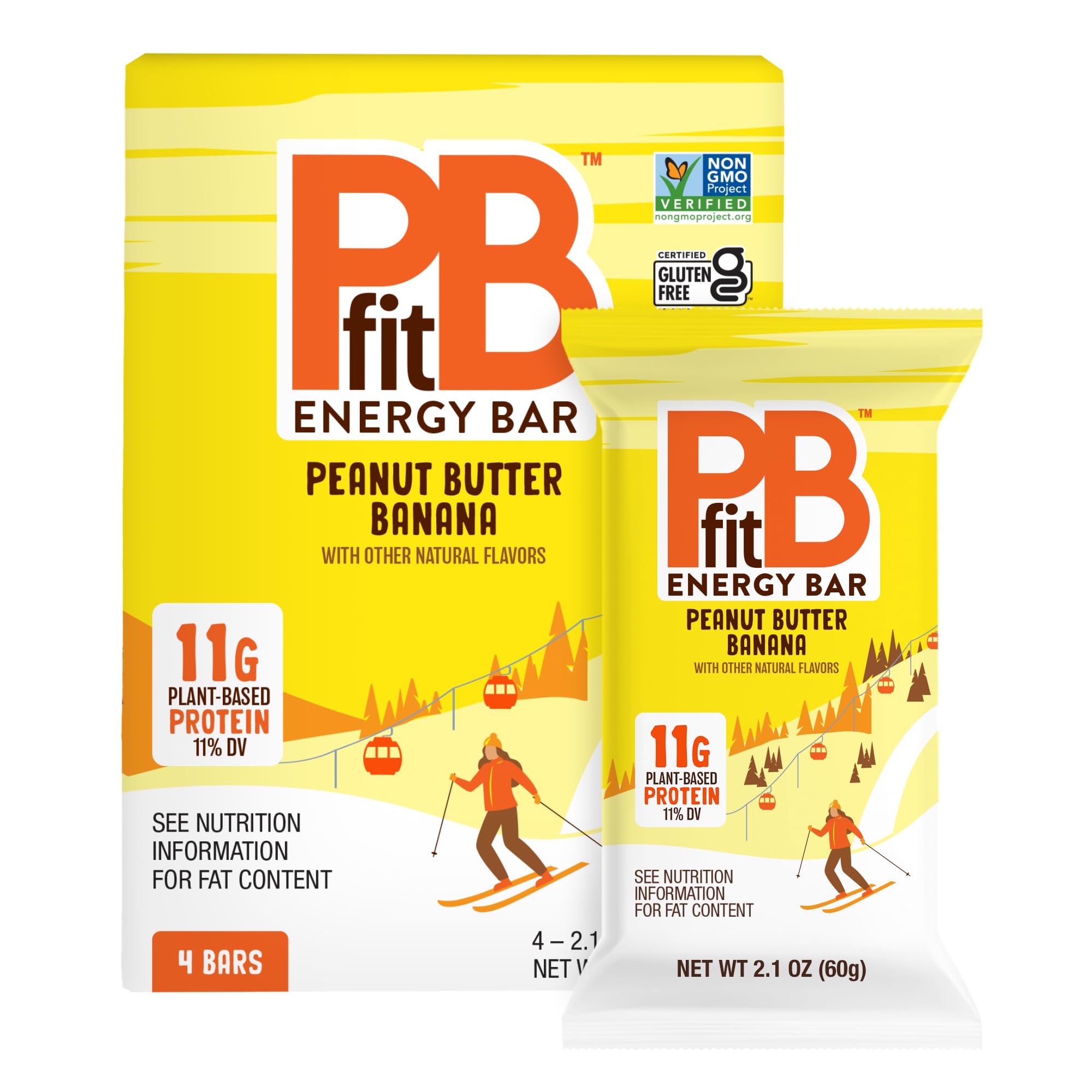 PBfit Peanut Butter Banana Energy Bars 11g Protein 5g Fiber Gluten Free Vegan Plant-Based Non-GMO 2.1 Oz (Pack of 4)