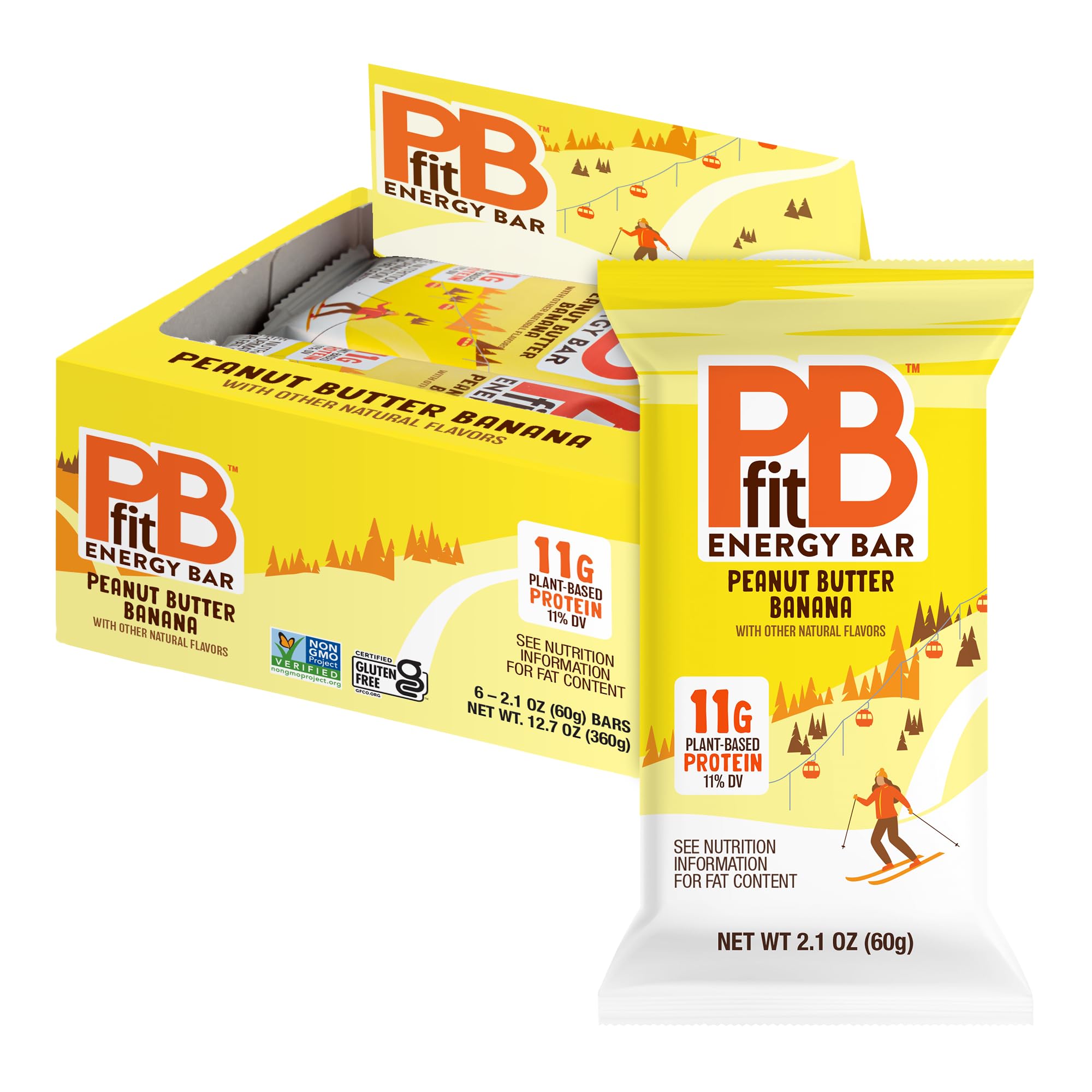 MADE FOR PEANUT BUTTER LOVERS: Craving delicious high protein snacks? Treat your taste buds to the irresistible peanut butter flavor of PBfit Protein Bars. Made with our PBfit peanut powder, each bite is packed with protein and the rich, creamy taste you love—perfect for satisfying your peanut butter cravings. QUALITY INGREDIENTS: Made with real peanut butter, peanut pieces, dried banana chips, and natural flavors, these energy protein bars are gluten-free, vegan, and non-GMO, free from artificial additives. IRRESISTIBLY TASTY: Savor a guilt-free snack with the perfect combination of creamy peanut butter and real banana chips, making these protein-packed energy bars a delicious snack that satisfies cravings and supports your busy schedule. SNACK ON THE GO: Perfect for the whole family, this bar is ideal for outdoor activities like hiking, biking, and running, or as an easy snack between mealtimes to keep you going throughout the day. PROTEIN FIBER: With 11g of plant-based protein and 5g of fiber, these energy bars make it easy to enjoy a delicious bite anywhere your day takes you. Creamy peanut butter, crunchy peanut pieces, and real banana chips come together for a snack that's ready when you are.