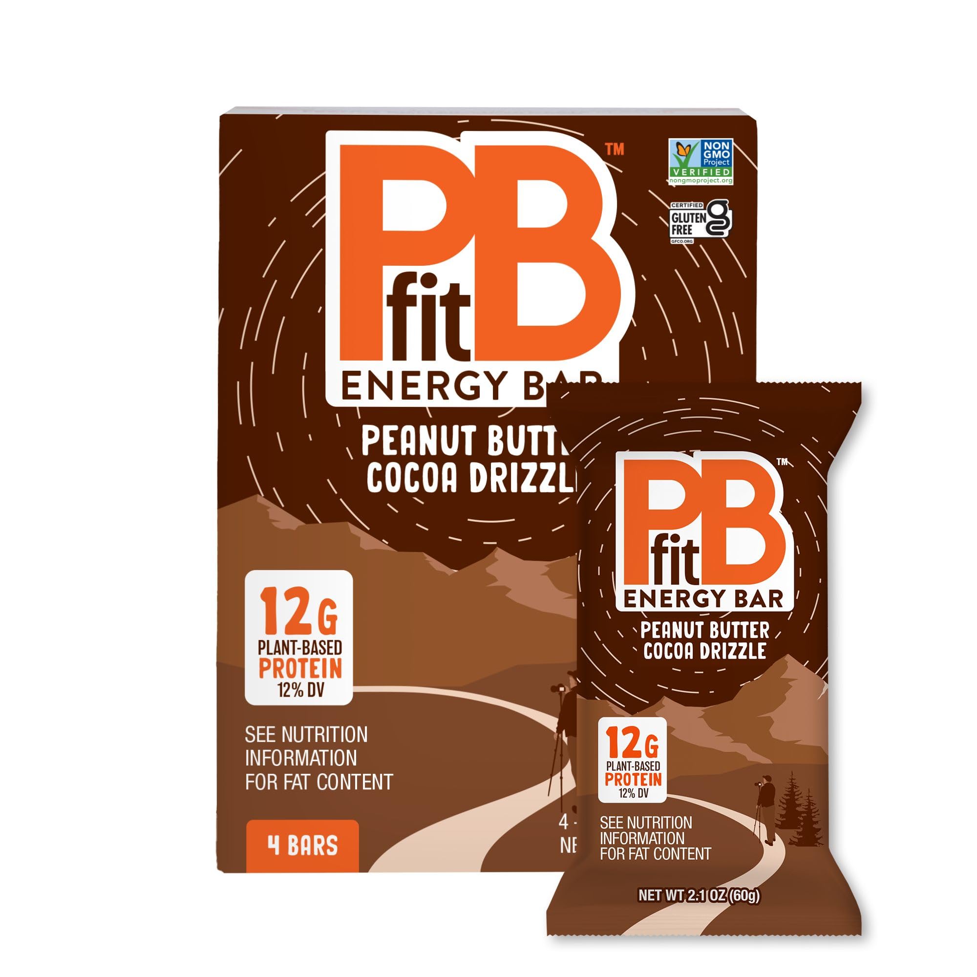 PBfit Peanut Butter Cocoa Drizzle Energy Bars 12g Protein 5g Fiber Gluten Free Vegan Plant-Based Non-GMO 2.1 Oz (Pack of 4)