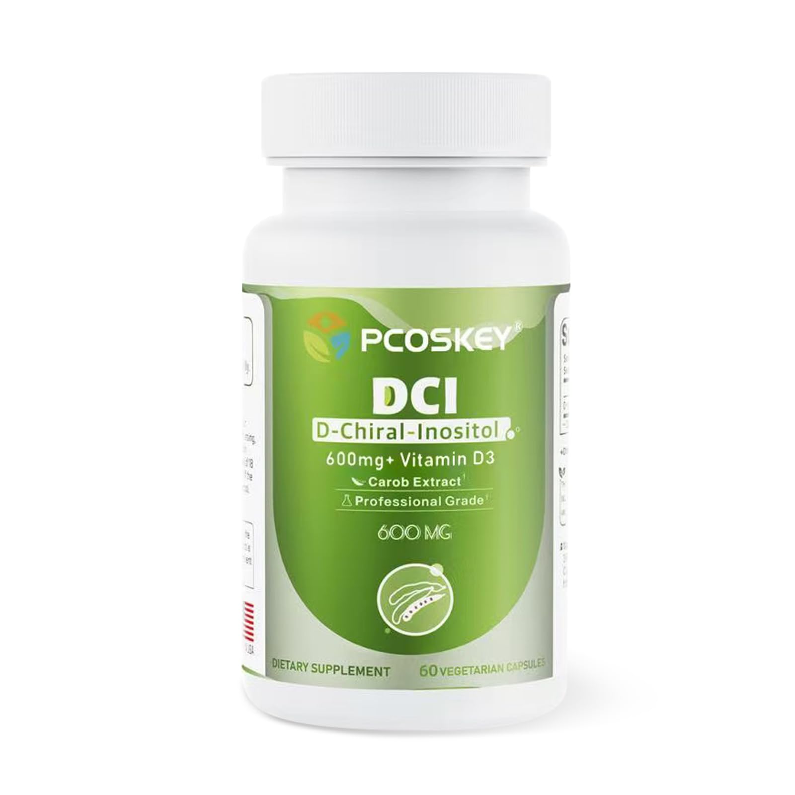 pcoskey D-Chiral-Inositol with Vitamin D3 600mg DCI + 400 IU Vitamin D3 Hormonal Balance & Ovary Support 60 Vegetarian Capsules