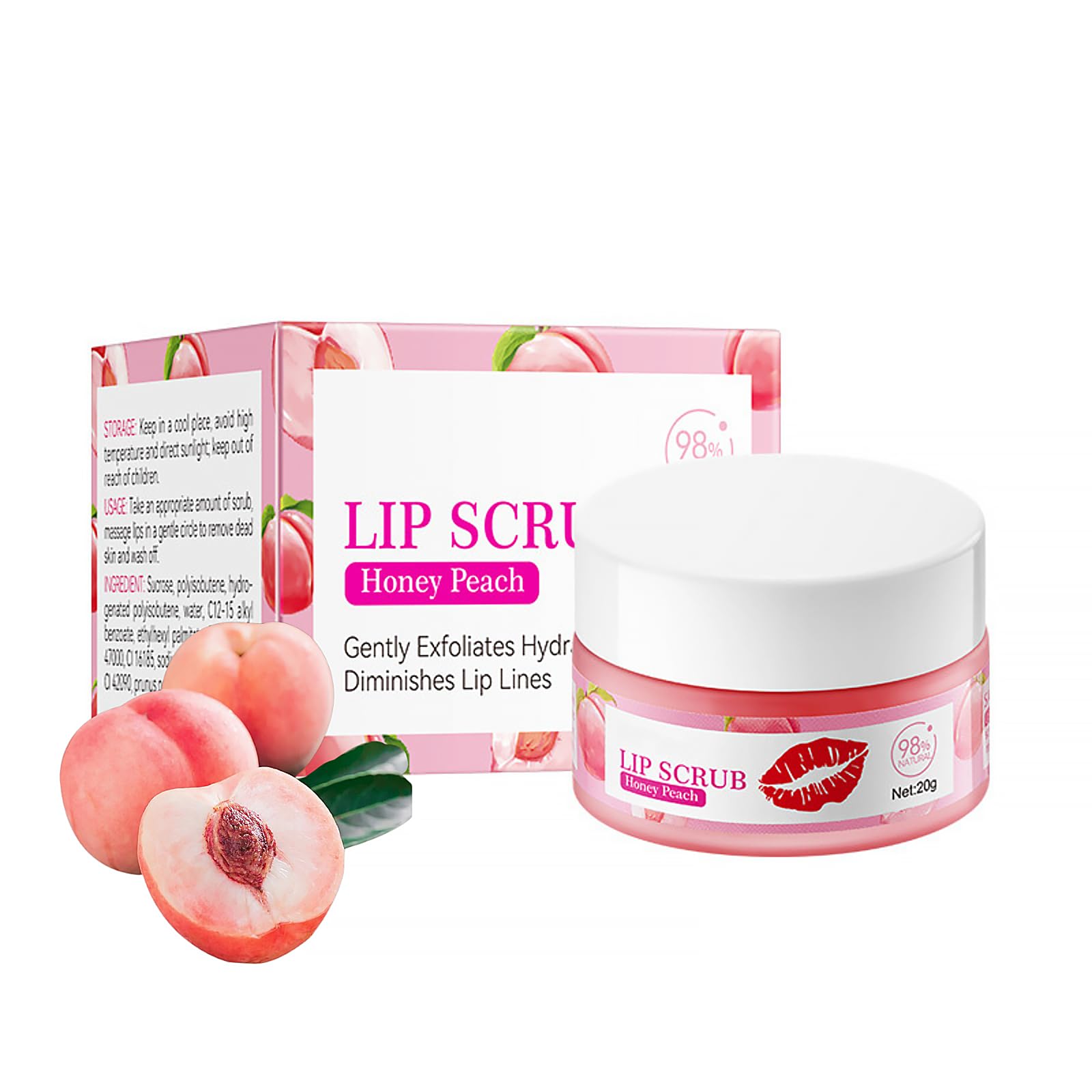 Get Your Girlishly Lip, with this Peach lip care lip scrub, you can totally solve your lip problems. Your lips will start to become shiny and moist, dry lips, dead skin, lip lines and other lip problems will not bother you.Our Sugar Lip Scrub repairs and rejuvenates lips, smooth, moisturized & plump lips! Lip Scrub Exfoliator Our lip repair scrub effectively remove dead skin while nourishing your lips. Mild natural plant extracts can lock in moisture for smoother, more textured lips,fundamentally solve the problem of dry, keratinized and cracked lips. Lip Lightening for Dark Lips The particles of lip scrubs are delicate, gently exfoliating lip keratin, and improving lip dullness. Fine sugar crystals exfoliate and moisturize your lips. Eliminates dry, flaky skin.Fades Lip Lines,Effectively Moisturizes and Repairs Dry Chapped Lips Feature ? Plump & Moisturize Lips Sugar scrub can gently remove dry cutin, soften dead skin, improve dullness, and make lips softer nd smoother. ? Exfoliate & Relieve Dryness Gently buff away the dead skin cells on the lips, revealing fresh, healthy skin underneath. ? Hydrated & Fade Lip Lines Contain effective skin care ingredients, provide nourishment and nourishment for lips, and solve lip problems in one step. How to use ? Apply a proper amount of lip scrub exfoliator to your lips. ? Massage in circles for 2-3 minutes to help remove dead skin, and then rinse with water. ? You need to use the lip exfoliator scrub regularly 3 to 4 times a week. Packing includes 1Pcs Peach Lip Scrub 20g Cautions ? For people with sensitive skin is recommended to patch trial, and ensure no discomfort,If you feel uncomfortable, please stop using, and promptly seek medical advice. ? Children shall not use it; Please put it in a dry and cool place, and infants and young children should not touch it. ? Please seal and save,store in a cool and dry place. SAFETY WARNING For external use only, Avoid contact with eyes, Keep away from naked fame or direct heat sources.?Exquisite Gift?This Lip brightening for dark lips can be given to your mother, wife, daughter, girlfriend or friend as an exquisite gift for birthday, Mothers Day, Valentines Day, Tanabata Day, Christmas, New Year and other holidays. I believe they will like it very much. ?Promote Absorption?Regular use of lip scrubs can help improve the absorption efficiency of subsequent lip care products, such as lipstick or lip gloss.The lip exfoliator and lip moisturizer make your lips fuller and more natural in color. ?Fade Lip Lines?Long term use of lip sugar scrub can help reduce the appearance of lip lines, making the lips look younger and healthier, especially suitable for people who frequently apply lipstick or are affected by environmental factors that cause deepening of lip lines. ?Nourishing & Moisturizing?In addition to its exfoliating function, peach lip scrubs adds vitamin E, which can provide necessary nourishment and moisturizing to the lips while cleaning, preventing dryness and the lip exfoliator scrub keep them soft and moist after exfoliation. ?Mild Lip Exfoliator?Lip skin is relatively delicate, and lip scrub contains delicate scrub particles, such as fine sugar particles, which can gently and effectively remove dead skin and aged keratin on the surface of the lips, improve dryness, peeling, and restore smoothness to the lips.