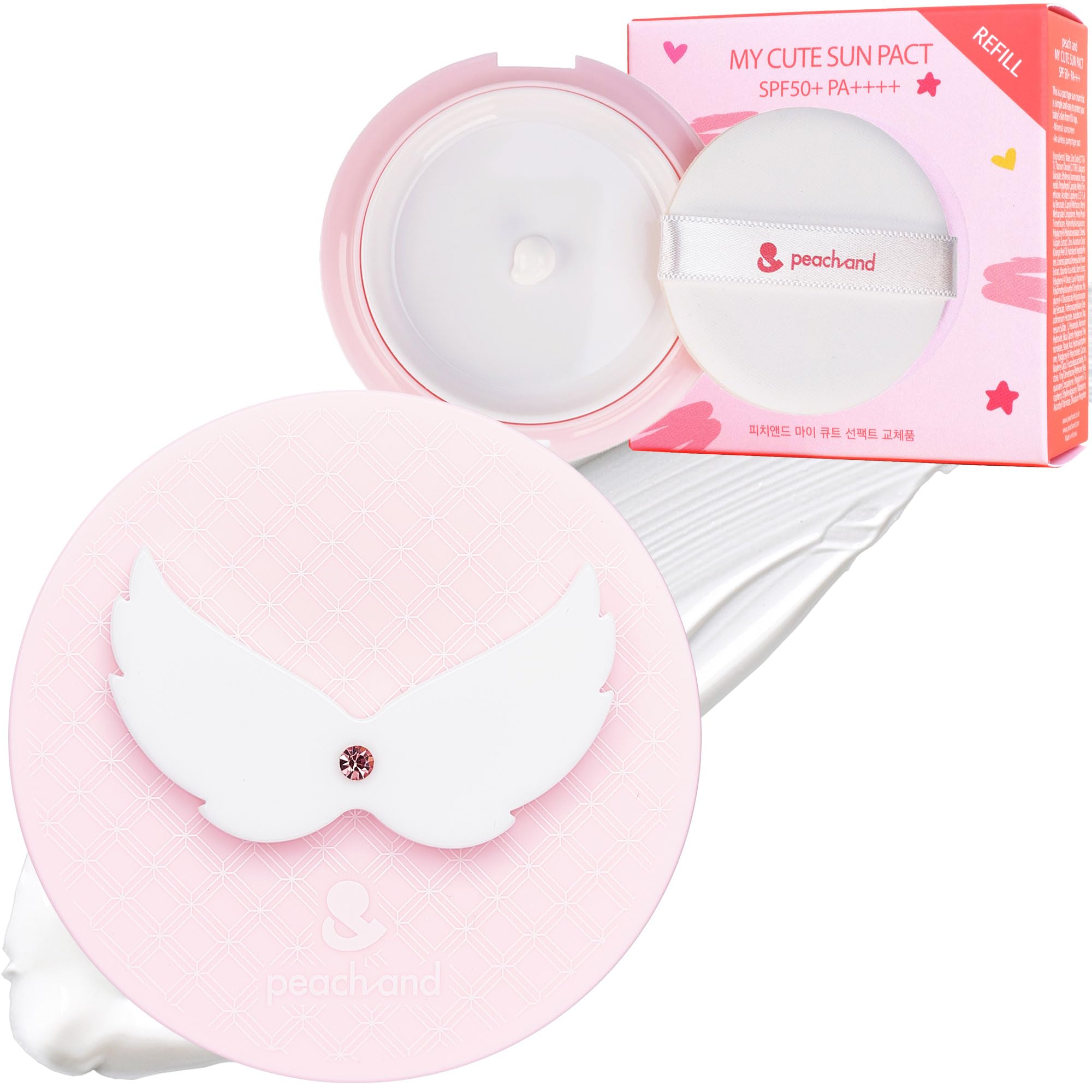 Peachand Baby Kids Mineral Sun Cushion SPF50+ PA++++ Korean Skin Care Angel's Wings Set with 1 Cushion and 1 Refill