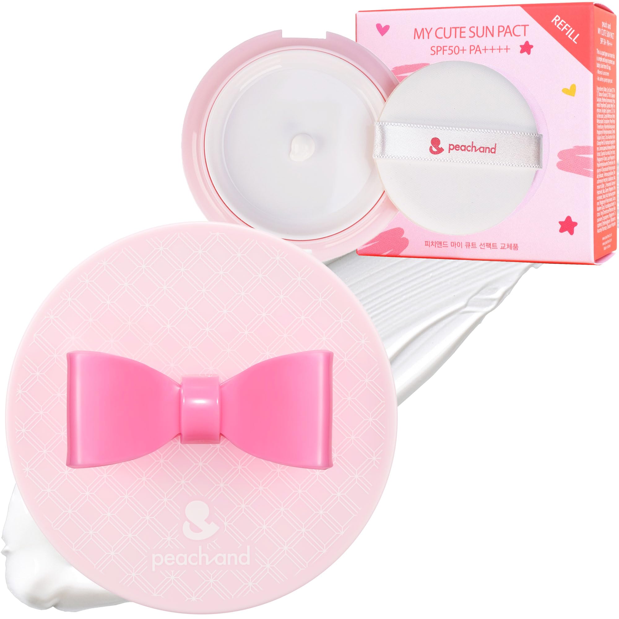 Peachand Baby Kids Mineral Sun Cushion SPF50+ PA++++ Korean Skin Care Pink ribbon Set with 1 Cushion and 1 Refill