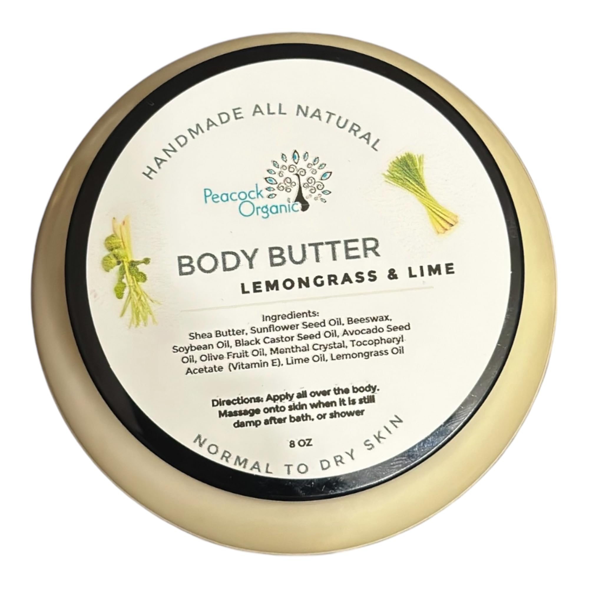 PEACOCK ORGANIC Lemongrass Lime Body Butter Hydration Shiny skin Moisturizing Butter 8oz