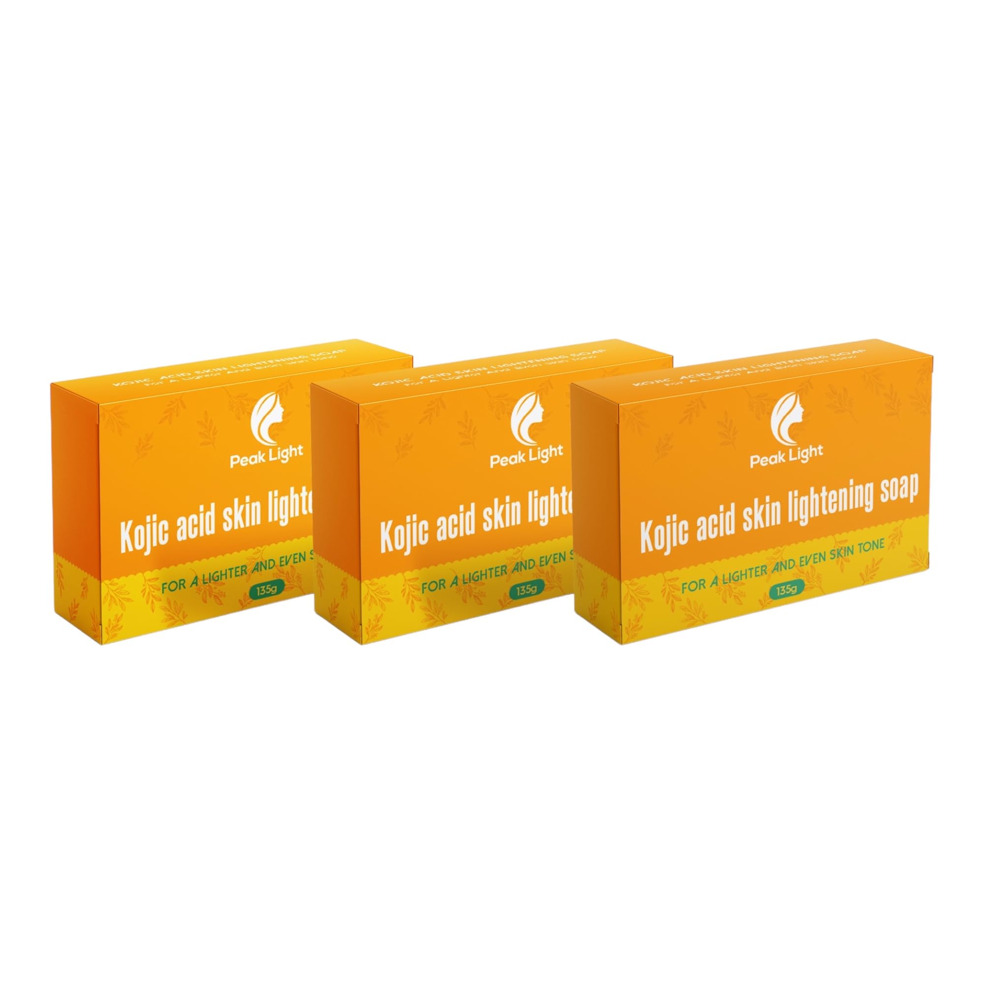 Peak Light Kojic Acid Soap is a popular choice for skin lightening due to its ability to inhibit the production of melanin, the pigment responsible for skin color. It can help reduce the appearance of dark spots, hyperpigmentation, and uneven skin tone. 1. Regular use of Peak Light Kojic Acid Soap can lead to gradual skin lightening, resulting in a brighter, more even complexion. It is commonly used to treat issues such as age spots, sun damage, and melasma. 2. Peak Light Kojic Acid Soap also has exfoliating properties, helping to remove dead skin cells and promote cell turnover. This can contribute to a smoother, more radiant skin appearance. 3. Peak Light Soap is generally considered safe for most skin types, but it is important to start with a patch test to check for any potential allergic reaction or sensitivity. Some people with sensitive skin may experience dryness or mild irritation, so it is advisable to moisturize after use. 4. It is essential to use sun protection when using kojic acid soap, as the skin can become more sensitive to UV damage. Daily application of a broad-spectrum sunscreen with at least an SPF of 30 and limiting sun exposure can help maintain the results achieved with kojic acid soap and protect the skin from further pigmentation problems.Peak Light Zero Pigment Technology: A unique delivery system that effectively targets the powerful active ingredient to ensure it is absorbed and activated by your skin and the areas where it is most needed. It can eliminate dark spots, age spots, scars, and hyperpigmentation, giving you a clearer, more even skin tone. Remarkable Whitening Effect: Kojic Acid Skin Lightening Soap can effectively reduce dark spots, freckles, acne, stretch marks, and uneven skin tone. Kojic acid is known for its remarkable whitening effect and antioxidant properties. Peak Light Kojic Acid Soap also has exfoliating properties, helping to remove dead skin cells and promote cell renewal. This can contribute to a smoother, more radiant complexion. Regular use of Peak Light Kojic Acid Soap can lead to gradual skin lightening, resulting in a brighter, more even skin tone. It is commonly used to treat problems such as age spots, sun damage, and melasma. It lightens the skin due to its ability to inhibit the production of melanin, the pigment responsible for skin color. It can help reduce the appearance of dark spots, hyperpigmentation, and uneven skin tone.3 x 135G Peak Light Genuine Kojic Acid Soap. Pack of 3DESCRIPTION DU PRODUIT Le savon à l'acide kojique Peak Light est un choix populaire pour éclaircir la peau en raison de sa capacité à inhiber la production de mélanine, le pigment responsable de la couleur de la peau. Il peut aider à réduire l'apparence des taches brunes, de l'hyperpigmentation et du teint irrégulier. 1. L'utilisation régulière du savon à l'acide kojique Peak Light peut entraîner un éclaircissement progressif de la peau, résultant en un teint plus lumineux et plus uniforme. Il est couramment utilisé pour traiter des problèmes tels que les taches de vieillesse, les dommages causés par le soleil et le mélasma. 2. Le savon à l'acide kojique Peak Light possède également des propriétés exfoliantes, aidant à éliminer les cellules mortes de la peau et à favoriser le renouvellement cellulaire. Cela peut contribuer à une apparence de peau plus lisse et plus éclatante. 3. Le savon Peak Light est généralement considéré comme sans danger pour la plupart des types de peau, mais il est important de commencer par un test cutané pour vérifier toute réaction allergique ou sensibilité potentielle. Certaines personnes à la peau sensible peuvent ressentir une sécheresse ou une légère irritation, il est donc conseillé d'hydrater la peau après utilisation. 4. Il est essentiel d'utiliser une protection solaire lors de l'utilisation du savon à l'acide kojique, car la peau peut devenir plus sensible aux dommages causés par les UV. L'application quotidienne d'un écran solaire à large spectre avec au moins un FPS de 30 et la limitation de l'exposition au soleil peuvent aider à maintenir les résultats obtenus avec le savon à l'acide kojique et à protéger la peau contre d'autres problèmes de pigmentation.Technologie Zero Pigment Peak Light : Un système de distribution unique qui peut agir efficacement sur le puissant ingrédient actif pour garantir qu'il peut être absorbé et activé par votre peau et les zones où il est le plus nécessaire. Il peut éliminer les taches brunes, les taches de vieillesse, les cicatrices et l'hyperpigmentation, vous donnant un teint plus clair et uniforme. Effet blanchissant remarquable : le savon éclaircissant pour la peau à l'acide kojique peut être efficace pour atténuer les taches brunes, les taches de rousseur et l'acné, les vergetures et le teint irrégulier. L'acide kojique est connu pour son effet blanchissant remarquable et ses propriétés antioxydantes. Le savon à l'acide kojique Peak Light possède également des propriétés exfoliantes, aidant à éliminer les cellules mortes de la peau et à favoriser le renouvellement cellulaire. Cela peut contribuer à une apparence de peau plus lisse et plus éclatante. L'utilisation régulière du savon à l'acide kojique Peak Light peut entraîner un éclaircissement progressif de la peau, résultant en un teint plus lumineux et plus uniforme. Il est couramment utilisé pour traiter des problèmes tels que les taches de vieillesse, les dommages causés par le soleil et le mélasma. éclaircir la peau en raison de sa capacité à inhiber la production de mélanine, le pigment responsable de la couleur de la peau. Il peut aider à réduire l'apparence des taches brunes, de l'hyperpigmentation et du teint irrégulier.