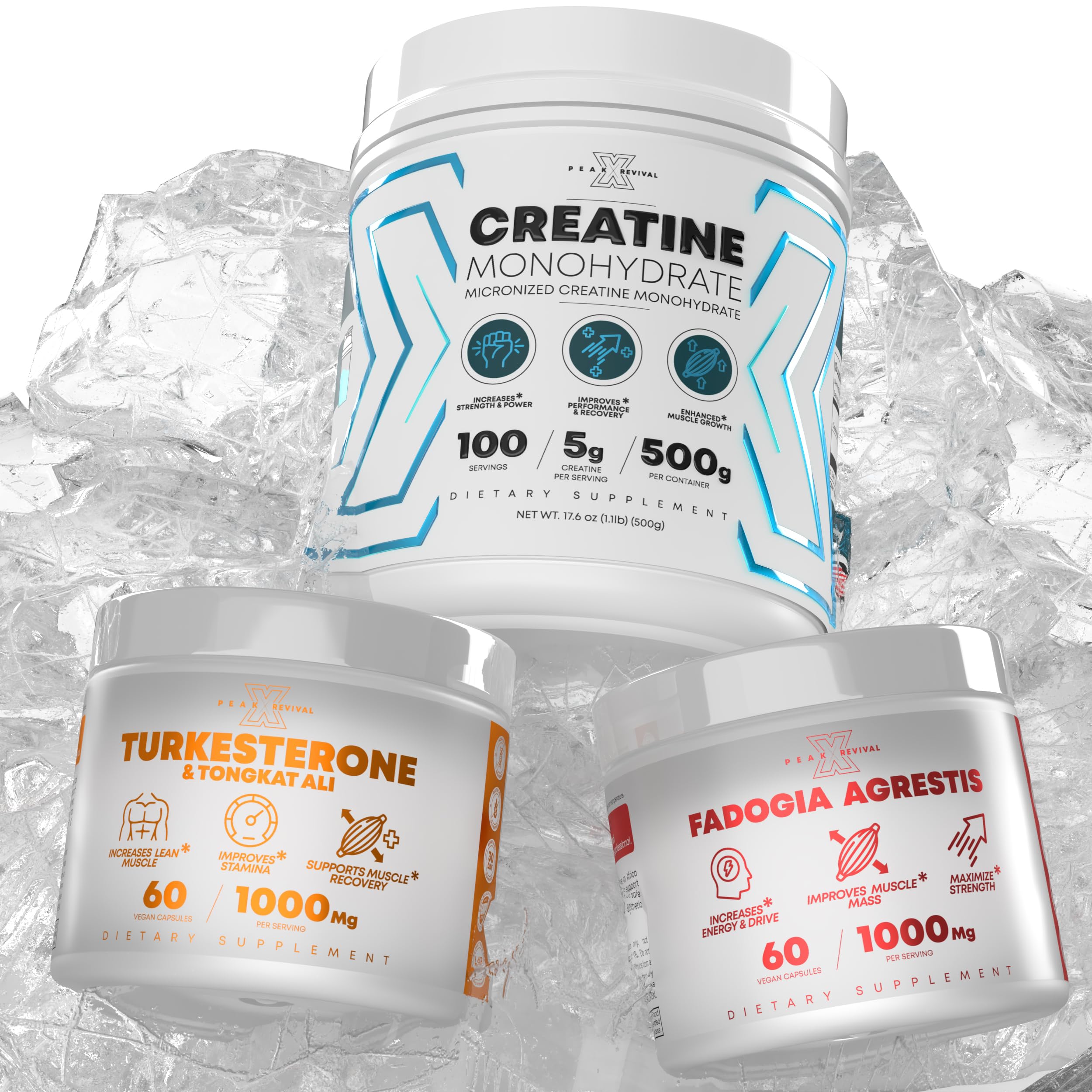 Fadogia agrestis, known as "Wild Garlic," hails from West Africa, lauded in traditional medicine for its drive and activity-boosting properties. Its alkaloids and flavonoids, acting like hormones, enhance drive and athletic performance. Elevate your fitness with Peak Revival-X's Creatine Monohydrate, crafted to bolster muscle strength, athletic prowess, and recovery. Each container provides 100 servings, delivering 5 grams of pure creatine monohydrate per serving. Manufactured in a GMP-certified facility in the USA, Peak Revival-X prioritizes top-notch quality and safety. Third-party testing ensures purity and potency. This unflavored, easily mixable supplement seamlessly fits into your workout regimen. Designed to amplify muscle volume, power, and hasten recovery, Peak Revival-X's creatine monohydrate is sourced from premium global ingredients. Consult a healthcare professional before starting any new supplement regimen. Opt for Peak Revival-X Creatine Monohydrate to elevate your fitness journey and witness significant enhancements in strength and performance.100 Servings Of Quality You Can Trust: Long-lasting supply for consistent performance bang for your buck. Manufactured in a GMP-certified facility 3rd party tested ensuring product integrity and quality. Pure, Consistent and Potent: Our creatine is 100 pure, free from additives or fillers, ensuring you get nothing but the best for your body. Regular use helps maintain optimal creatine levels in muscles, supporting improved workouts and faster recovery. Elevate Your Fitness Game: Peak Revival-X's Creatine Monohydrate. Our premium formula is crafted to help athletes, bodybuilders, and fitness enthusiasts achieve peak performance. Whether you're aiming to increase your strength, boost your muscle mass, or improve your endurance, this supplement is your ally. PEAK PERFORMANCE - Are you looking to take your performance to the next level? Whether you're hitting the gym, working hard, or striving for personal growth, our Turkesterone supplement can help. Turkesterone has been clinically proven to support muscle health, enabling you to break through weight-lifting plateaus and reach your goals. LACK OF ENERGY STAMINA - Peak Revival-X Fadogia Agrestis 1000mg per serving can help increase energy levels and improve physical performance, allowing you to tackle your daily tasks with renewed vigor.