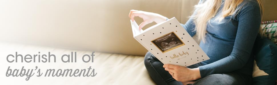 Your new baby has arrived! Say "hello baby" with Pearhead's modern and trendy baby memory book keepsake. This modern, black and white baby book includes 50 fill-in photo journal pages to record all of baby's moments from birth to the first days of school. Display baby's sonogram photo or first newborn picture on the front cover of this stylish baby book. White, black, and gold foil colors decorate the front of this baby book with "hello baby" and a modern arrow design stamped in gold foil. The inside pages of the baby memory book include space for photos, artwork, birthday memories, school keepsakes, and more. This keepsake baby book also includes an area to fill in baby's family tree and information about baby's parents. Place your favorite photos of baby, mommy, daddy, and more throughout the first few years of their life inside this guided journal. Pearhead's baby book is the perfect gift for any baby shower or a must have for your baby gift registry. Give this special baby memory book as a baptism gift or gift for baby's christening. Any parent is sure to love and cherish this special keepsake book. At Pearhead, we aim to create genuine, quality products to celebrate your special moments in life. We are a family of designers, marketers, and trendsetters bringing products to life that will bring a smile to your face. From concept and design to production and customer service, the Pearhead team works together seamlessly every step of the way. Whether your baby is celebrating their first year of life, you are announcing your pregnancy, or your pup is celebrating his first holiday season, Pearhead is here to share your moments in style. Product dimensions: 8.88" W x 11.25" H x .56" D; Photo insert: 4" x 5".This babybook makes the perfect gender-neutral baby gift, baby girl gift, baby boy gift, new mom gift, expecting mother gift or addition to your own baby shower gift registry!. Pages also include: space to include photos throughout the journal of mommy, daddy, baby’s sonogram, the family, mommy while pregnant, baby shower, baby’s first picture, homecoming, baby sleeping, bath time, birthdays, friends, activities, pre-school, kindergarten, art, and holidays. Pages also include: 1st - 5th birthday, friends, favorite activities, preschool, kindergarten, art made in school, first holiday, other special memories, family moments. Pages also include: delivery/birthday!, prints from hospital, birth announcement, visitors/gifts, homecoming, the world I came into, baby’s first bath, laugh, words, crawl, steps, and more, favorite things, growth chart, sleep, eating, and bathing schedule. Pages include: who this book belongs to, baby’s introduction, about mommy, about daddy, mommy and daddy’s story, family tree, mommy’s pregnancy journey, doctor visits, baby shower, gift and guest list. Pearhead's baby memory babybook is the perfect gift for any baby shower, baby baptism or christening; includes 50-guided journal pages with space for photos.Item Dimensions LxWxH: 0.56 x 8.88 x 11.25 inches. Binding: Baby Product. Item Weight: 1.15 Pounds. Material: Paper. Target Audience: Unisex-baby. Format: Picture Book. Year: 2016. Color: Hello Baby Sonogram Book. Brand: Pearhead. Best Sellers Rank: #2,933 in Baby. Customer Reviews: 4.8 out of 5 stars 8,444 ratings 4.8 out of 5 stars. : B072PSF84S. Country/Region of origin: ?China. Item Weight: ?1.15 pounds. Batteries required: ?No. Style: ?Hello Baby Polka Dot Baby Book. Number Of Items: ?1. Material Type: ?Paper. Target gender: ?Unisex. Is Discontinued By Manufacturer: ?No. Item model number: ?72028. Product Dimensions: ?0.56 x 8.88 x 11.25 inches.