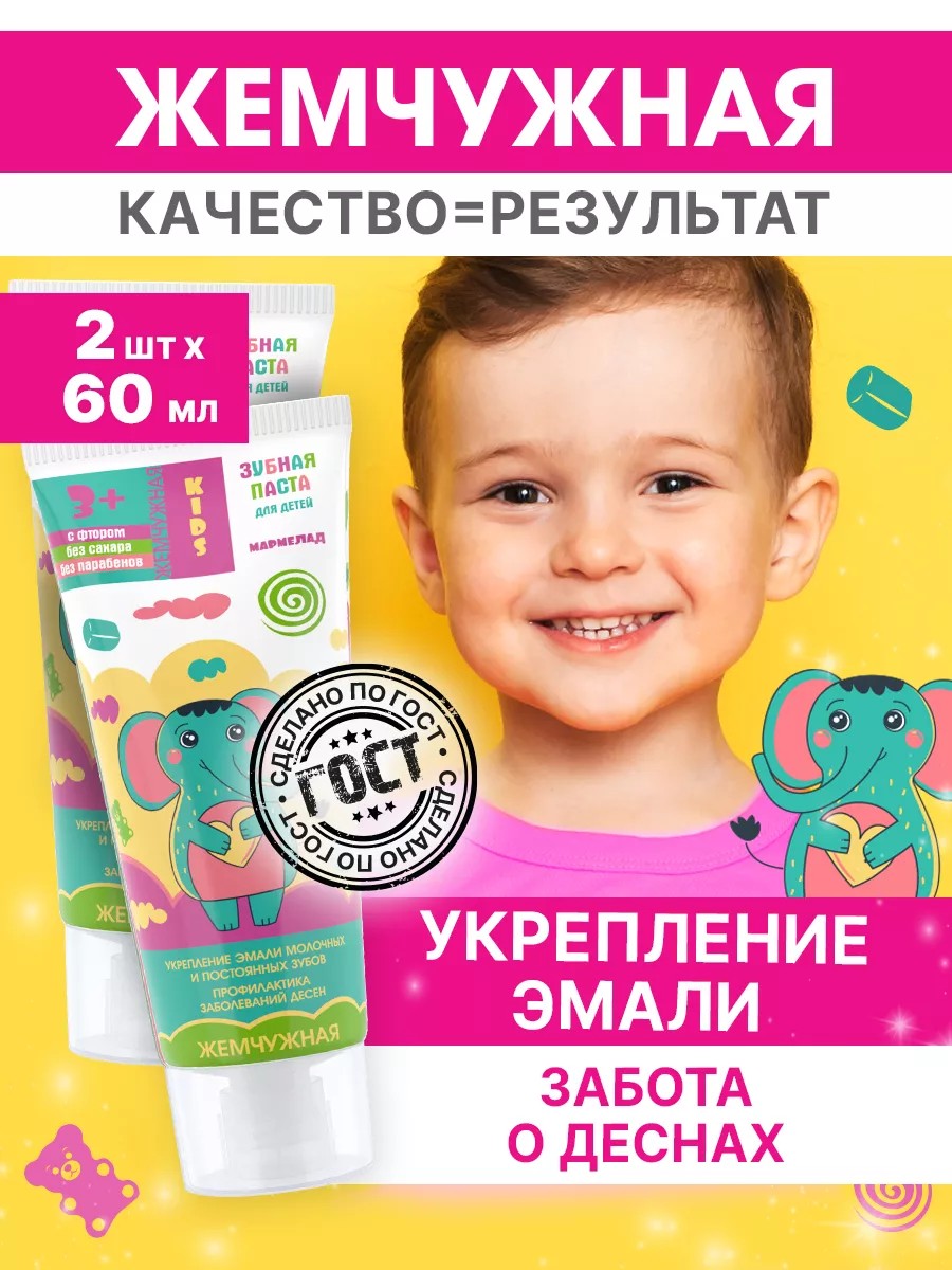 жемчужная Зубная паста детская против кариеса Мармелад 60мл 2шт