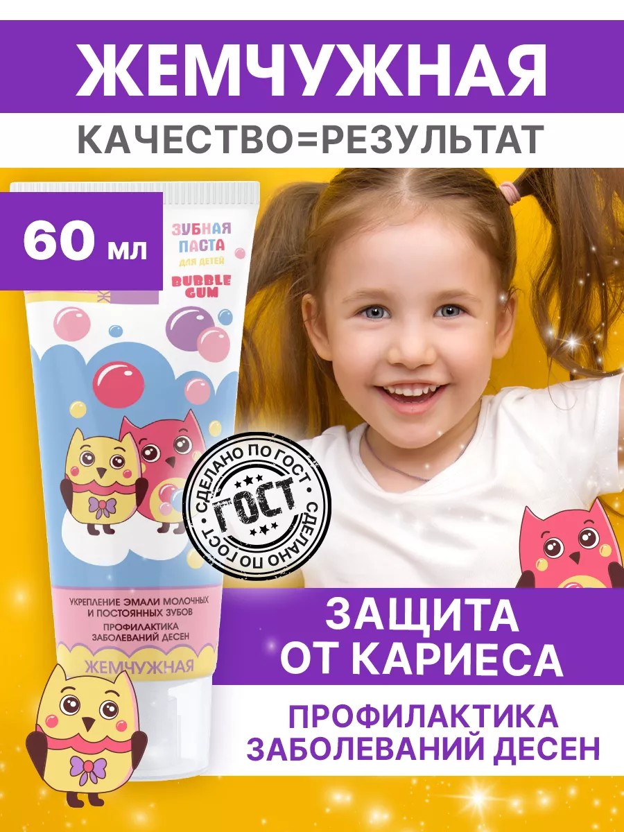 жемчужная Зубная паста детская против кариеса Bubble Gum 60мл