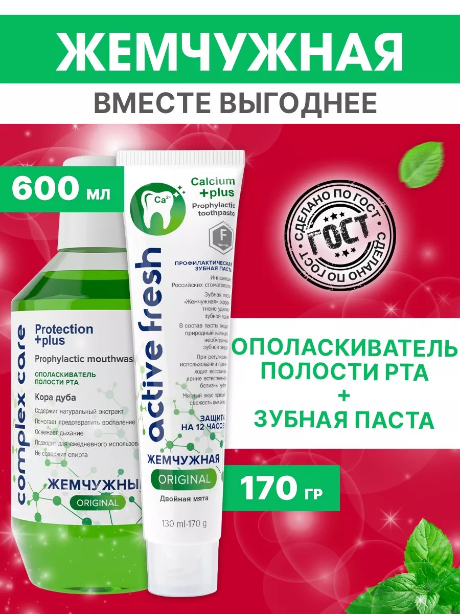 жемчужная Ополаскиватель для рта 600 мл и Зубная паста 170 гр