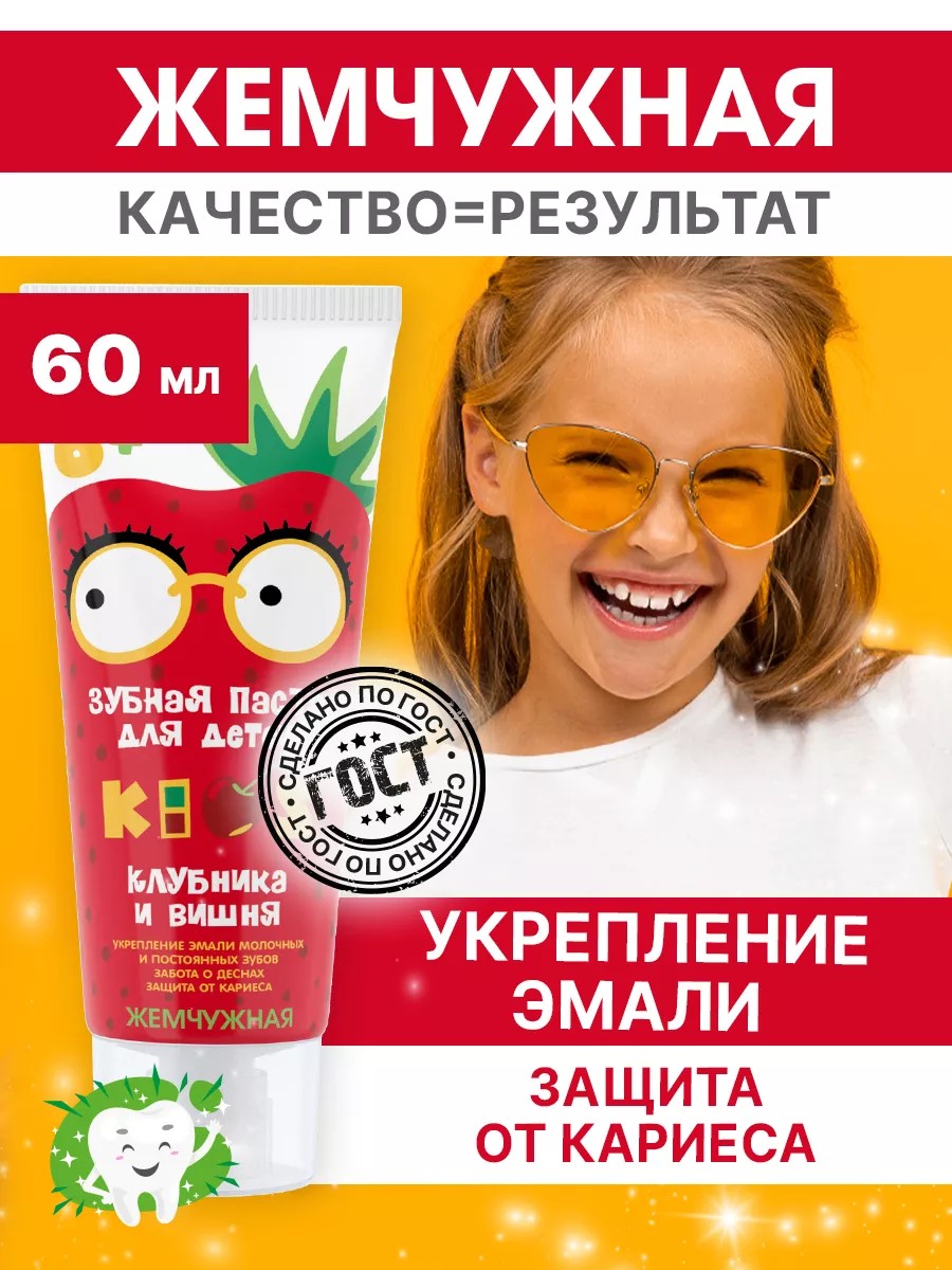 жемчужная Зубная паста для детей 6+ клубника и вишня 60мл