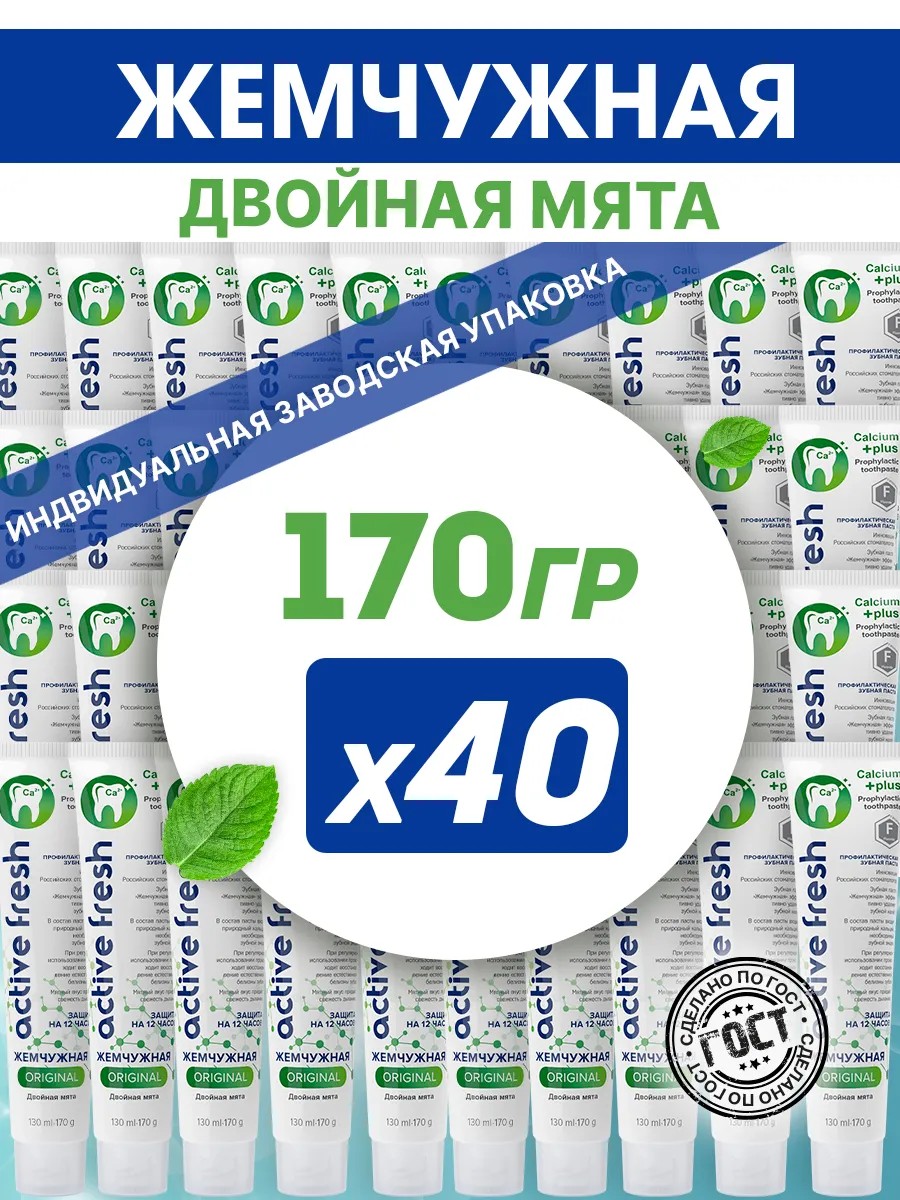 КОРОБКА с 40 зубными пастами Жемчужная Original Двойная мята 170 гр. Отбеливающая зубная паста Жемчужная Двойная мята отлично очищает, бережно отбеливает и полирует эмаль. Сохраняет длительную свежесть дыхания и обладает ярким и свежим ароматом перечной мяты. Содержит специальный комплекс микроэлементов, обеспечивающий профилактику воспаления десен, надежную защиту от кариеса, укрепление зубов и снижение чувствительности эмали. Зубные пасты совмещают ежедневный уход и профилактику, при условии регулярного двухразового использования утром и вечером эффективны от налета и зубного камня, обеспечивают мягкий отбеливание. Она идеально подходит как средство для ухода за зубами при ношении брекетов. Линейка зубных паст Жемчужная Original - это универсальная женская и мужская чистящая косметика для зубов с безопасным органическим составом, с хорошим пенообразованием, сохранением свежести и мятного аромата на протяжении длительного времени. Гигиенический уход препятствует появлению кариеса и зубного камня. Ультракомплекс активных элементов в составе пасты обеспечивает защиту зубов и десен, быстро и эффективно уничтожает налет и бактерии, которые являются источником неприятного запаха. Проверенная многими курильщиками формула эффективно и безопасно удаляет табачный, кофейный, чайный налет, возвращает зубам натуральную белизну и здоровье. Средства представлены в удобной тубе и максимально выгодным объемом 170 грамм. Зубные пасты Жемчужная подходят для ежедневной гигиены полости рта, имеют безопасный состав, подходят беременным и кормящим женщинам. Они обеспечивают укрепление и восстановление зубной эмали, дарят свежесть дыхания и легкий косметический эффект, даря красоту зубам и здоровье деснам. Идеальный подарок близким людям с заботой об их здоровье - для мамы и папы, бабушки и дедушки, подруги и друга. У нас есть акции и распродажи, вы можете купить наши товары в подарок со скидкой!