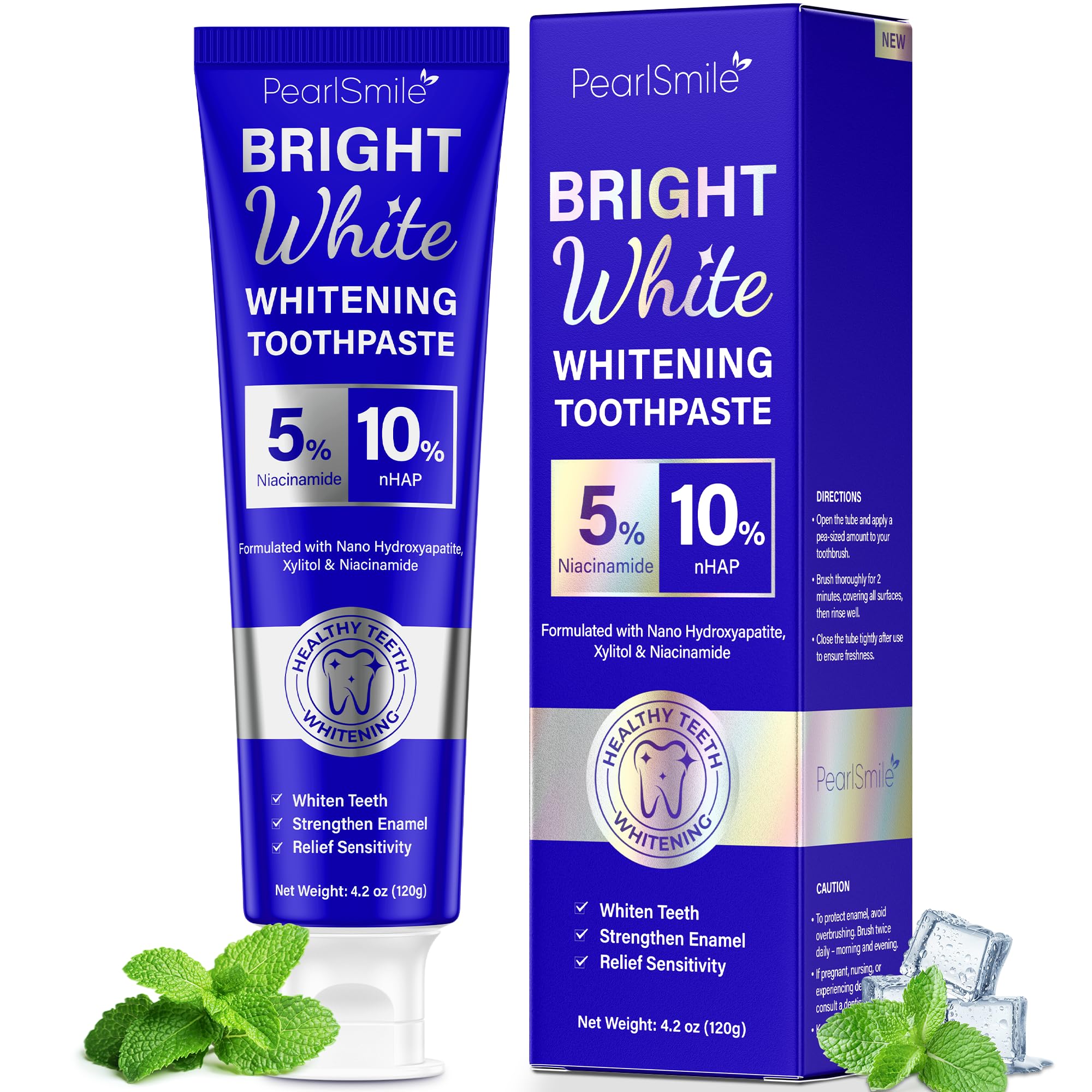 PearlSmile Niacinamide Hydroxyapatite Whitening Toothpaste 10% Nano Hydroxyapatite + 5% Niacinamide Strengthens Enamel Remineralizes Brightens Teeth Fluoride-Free Travel Size 4.2oz 4.2 Ounce (Pack of 1)