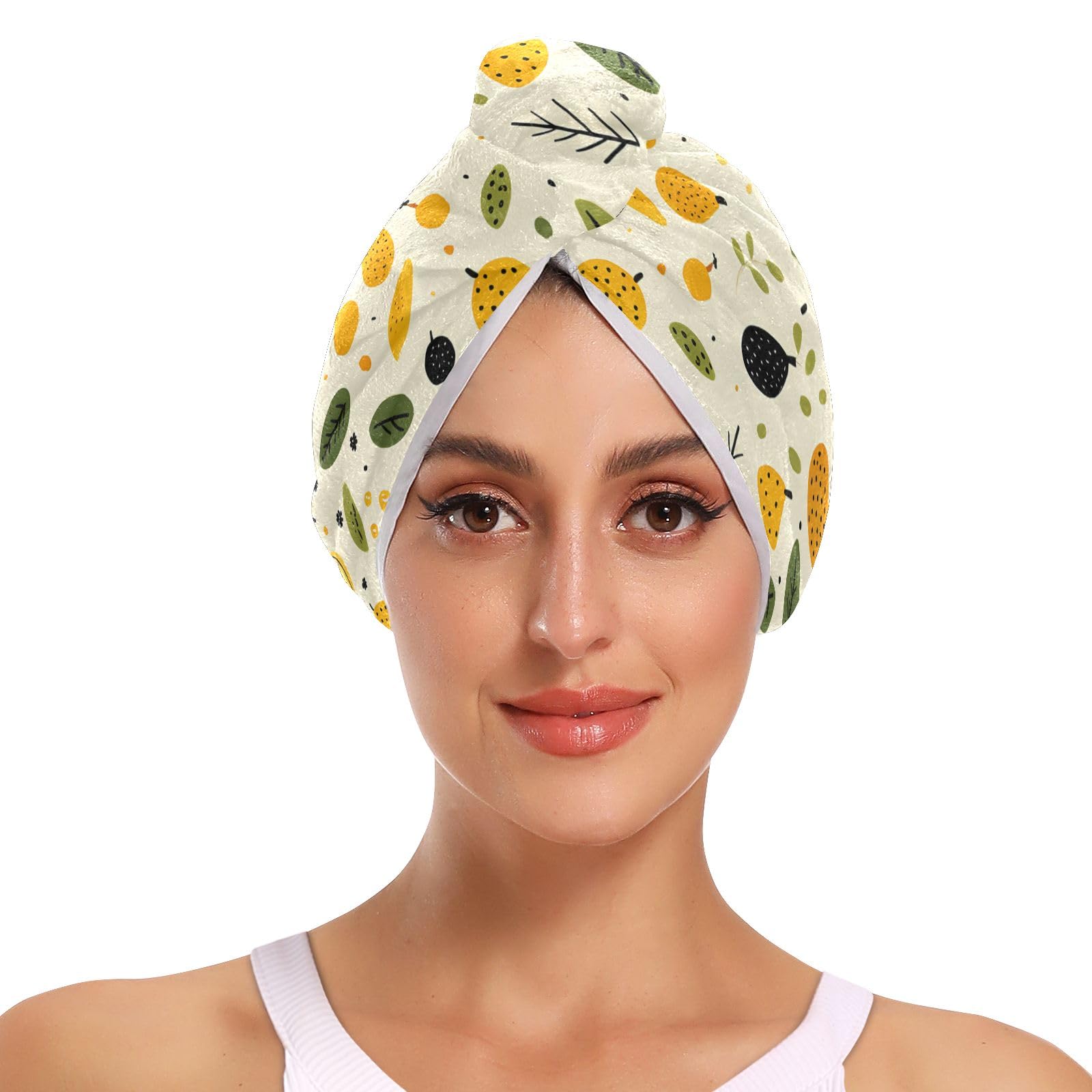 Pears Leaves Hair Towel 2 Pack Super Absorbent Hair Drying Towel Quick Dry Hair Turbans Head Towel with Button Twisty Wrap for Women Girls