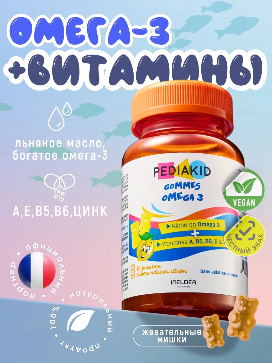 Pediakid Omega 3 gommes - это высококачественная детская биодобавка, разработанный специально для поддержания здоровья и развития детей. Эти жевательные мармеладки содержат важные жирные кислоты Омега-3, которые необходимы для правильного функционирования организма.