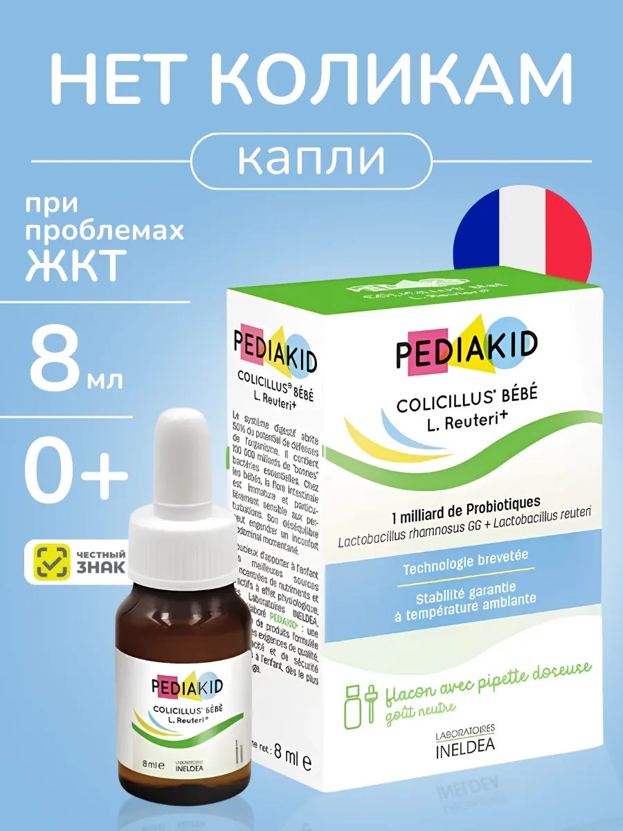 However, before use, you should make sure there is no individual intolerance to the product components. "Pediakid Colicillus for children with Reuteri lactobacilli +" is a reliable solution for maintaining the health and well-being of your baby.