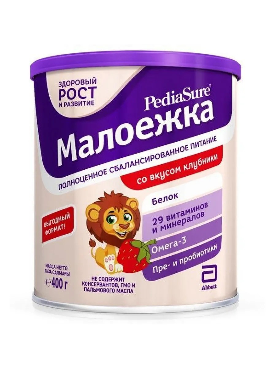 Specialized food product for children's dietary therapeutic nutrition, dry mixture Pediashur Maloezhka from 1 year to 10 years with strawberry flavor