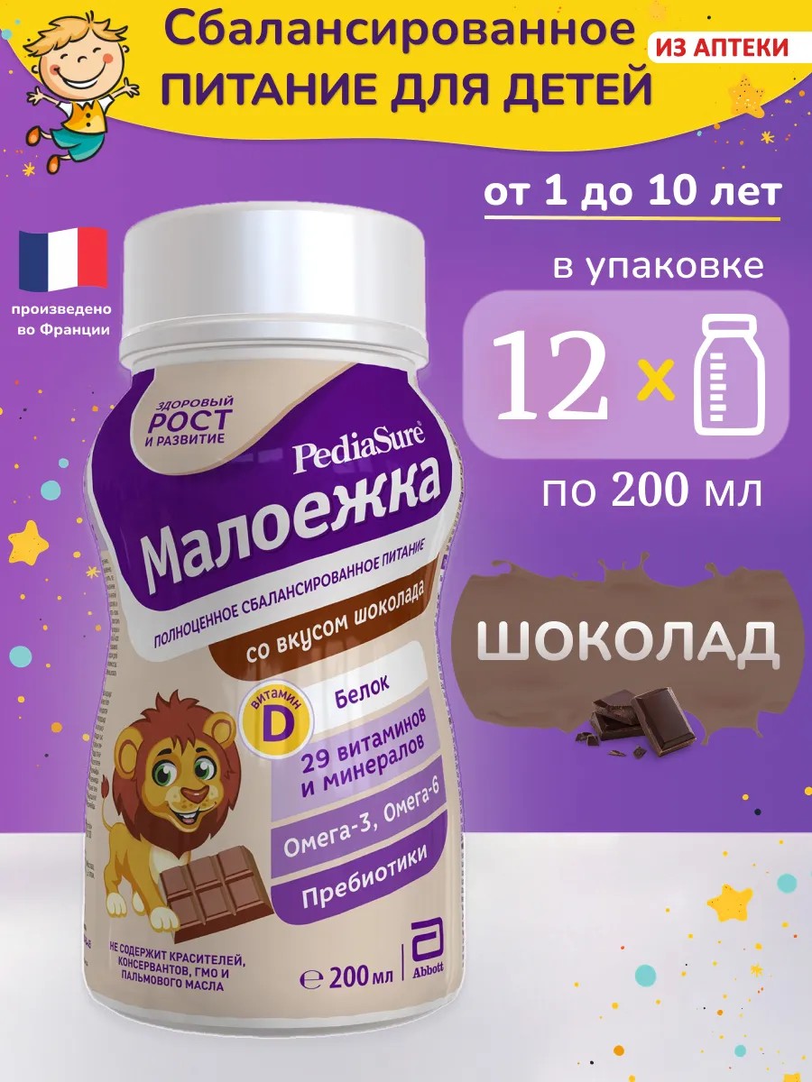 PediaSure Maloezhka is a delicious nutritious drink that provides complete and balanced nutrition for children aged 1 to 10 years.