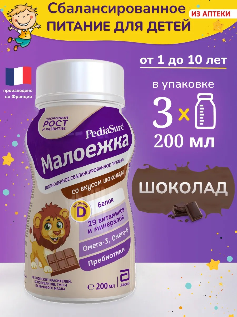 PediaSure Maloezhka is a delicious nutritious drink that provides complete and balanced nutrition for children aged 1 to 10 years.