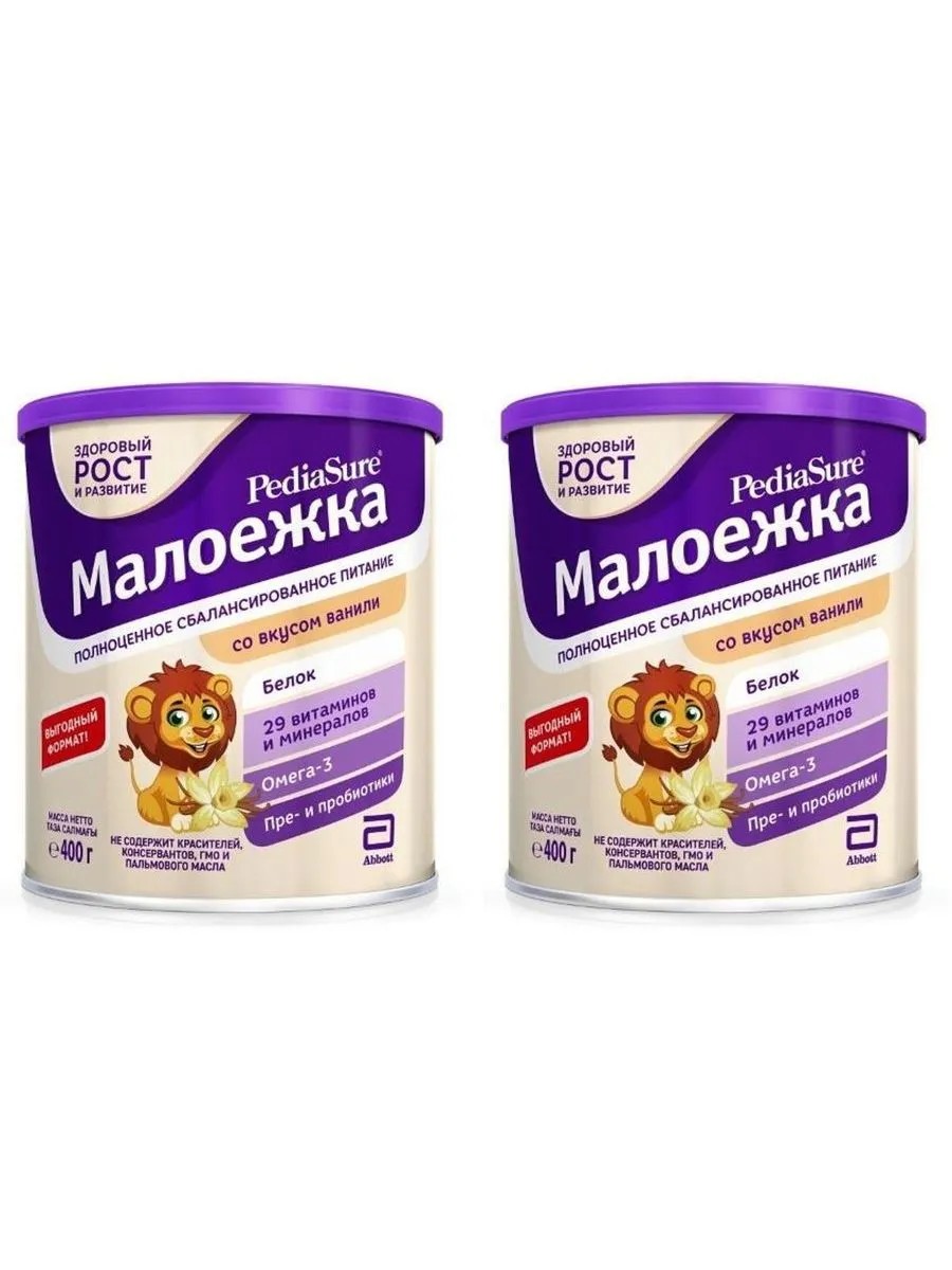 pediashur little eater 400.0 vanilla. Complete and balanced nutrition for optimizing the nutrition of children with malnutrition hydrolyzed corn starch, sucrose, vegetable oils (canola oil, high oleic sunflower oil, sunflower oil, medium chain triglycerides), milk protein concentrate, maltodextrin, soy protein isolate, fructooligosaccharides (phos), minerals (potassium citrate, sodium citrate, potassium salts of orthophosphoric acid, calcium salts of orthophosphoric acid, potassium chloride, magnesium chloride, calcium carbonate, sodium chloride, magnesium salts of orthophosphoric acid, iron (II) sulfate, zinc sulfate, manganese sulfate, copper sulfate, potassium iodide, chromium chloride, sodium selenite, sodium molybdate), flavors (natural and vanillin), emulsifier soy lecithin, (DHA) from c. cohnii oil, choline, vitamins (vitamin C, Vitamin E, niacin, pantothenic acid, vitamin B1, vitamin B6, vitamin B2, vitamin A, folic acid, vitamin K, biotin, vitamin D3, vitamin B12), antioxidant ascorbyl palmitate, taurine, inositol, carnitine, lactobacillus acidophilus (at least 106 CFU/g), antioxidant mixed tocopherols. Pediasure little eater (Pediasure), by Abbott - vanilla - a specialized food product for children's dietary therapeutic nutrition - dry mixture for enteral nutrition of children aged 1 to 10 years with vanilla flavor. Warning: Never prepare or heat the mixture in a microwave oven. This can cause serious burns. 0