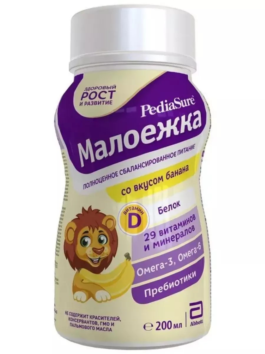 Это вкусный питательный напиток, который дополняет несбалансированную еду питательными веществами, чтобы ребёнок получал всё необходимое для здорового роста и развития. Полноценное, сбаланрированное питание с доказанной эффективностью, отвечающее потребностям детей от 1 года до 10 лет с несбалансированным рационом. Преимущества: Сбалансированный состав продукта (белок, 29 витаминов и минералов, омега-3 жирная кислота, пребиотики) поможет восполнить нутриенты, которые ребенок не получил во время еды; Эффективность продукта клинически доказана; 1 бутылочка может заменить 1 дополнительный прием пищи. Продукт полностью готов к употреблению, поэтому его легко можно дать ребенку в дорогу, в школу, после спорта или во время прогулки. Не содержит красителей, консервантов, глютена, гмо и пальмового масла. Эффективность продукта клинически доказана. Белок - для роста костей и мышц. Жиры - для энергии. 29 витаминов и минералов - для здорового роста и развития организма. Омега-3 - для развития мозга, зрения и иммунной системы. Пребиотики - для здорового пищеварения, нормализации микрофлоры и иммунитета.