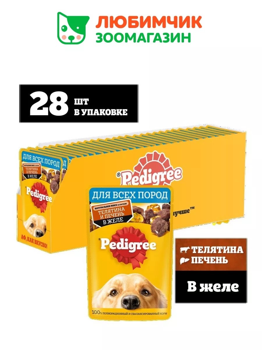 PEDIGREE Влажный корм для собак, телятина и печень в желе 28х85гр