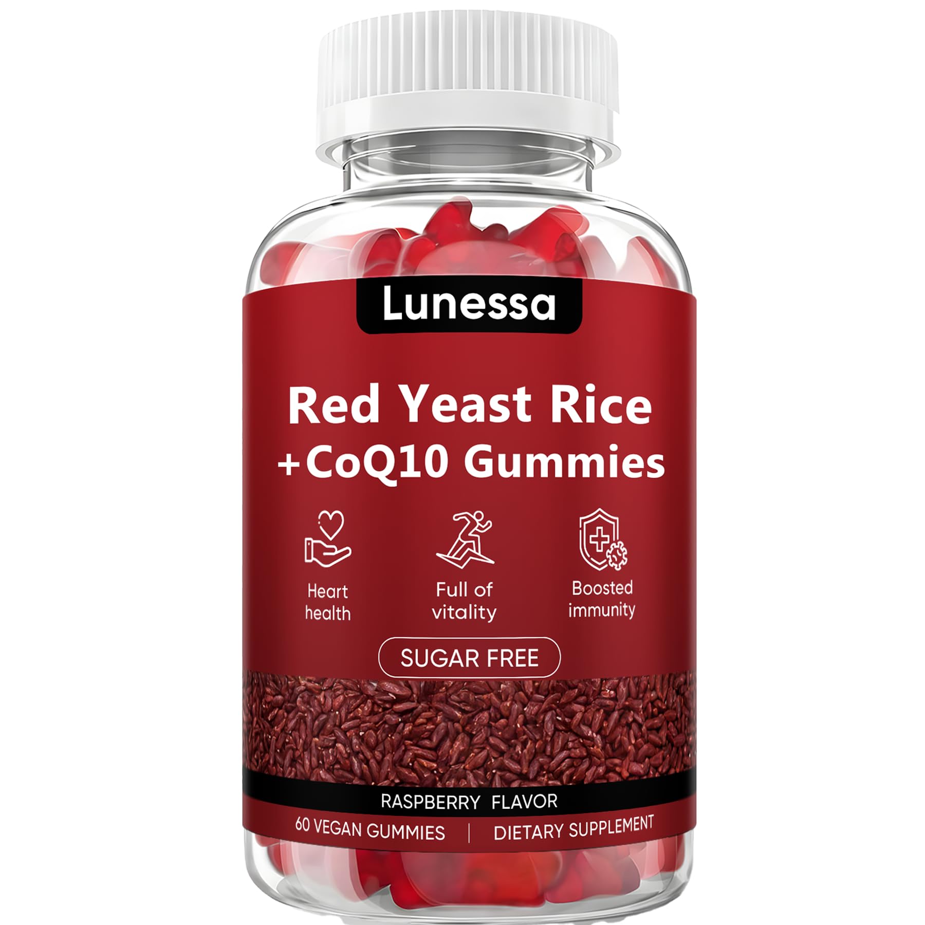 Peehss Lunessa Red Yeast Rice with CoQ10 Gummies Lunessa Red Yeast Rice 2400mg Non-GMO Vegan Raspberry Flavor 60 Count