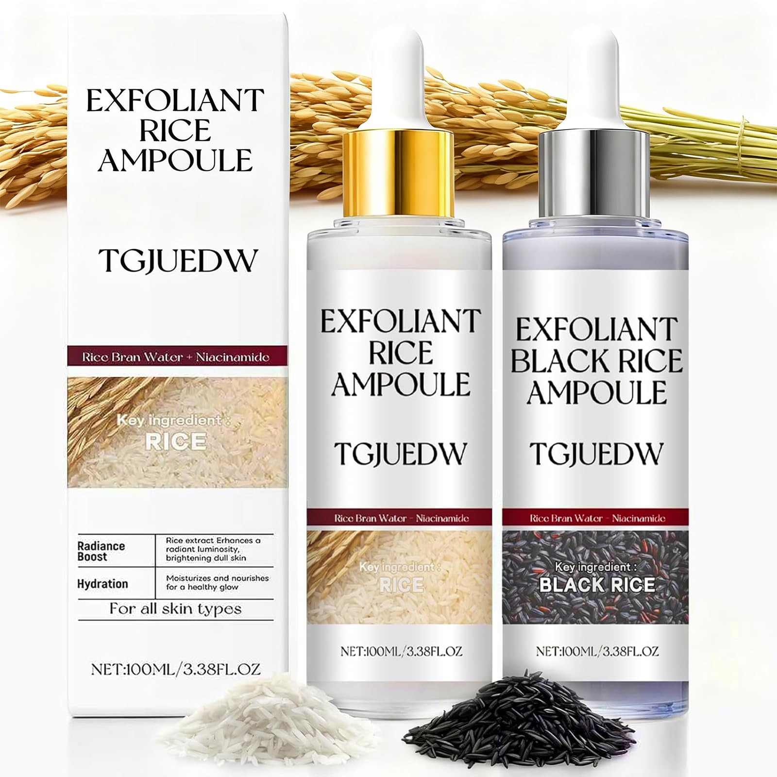 Peel Shot Glow Rice Ampoule Duo Black & White Rice Peeling Ampoule New Soft Rice Exfoliating Face and Body Black and White Rice Exfoliant for All Skin Types -2PCS | 3.38 Fl Oz Each.