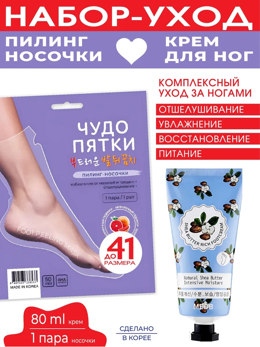 Комплект для ухода за ногами "Пилинг носочки чудо пятки и крем для ног" — это идеальное решение для мягких и гладких пяток. Специальные носочки с эффектом пилинга бережно удаляют омертвевшие клетки кожи, а питательный крем интенсивно увлажняет и смягчает кожу. Результат — заметно улучшенное состояние кожи стоп, избавление от шероховатостей и сухости.