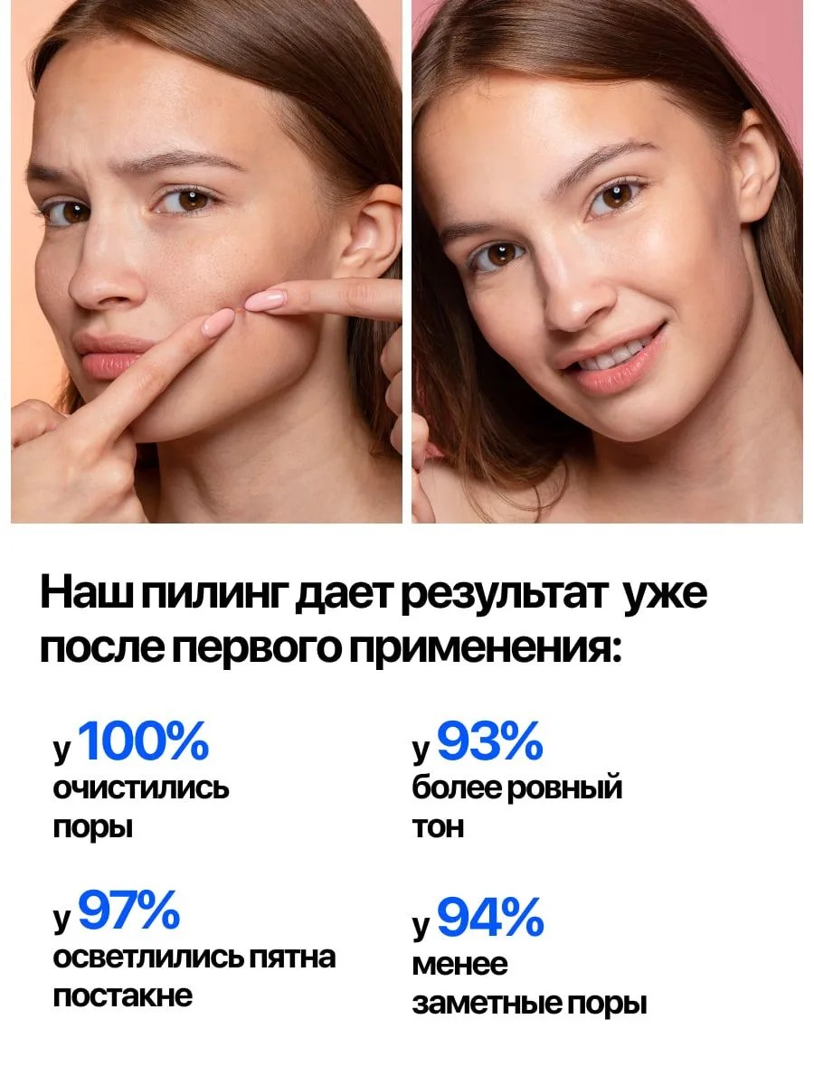 Its powerful formula provides deep cleansing, removing dead skin cells and freeing pores from excess sebum. At the same time, the peel helps reduce inflammation and prevent new breakouts.