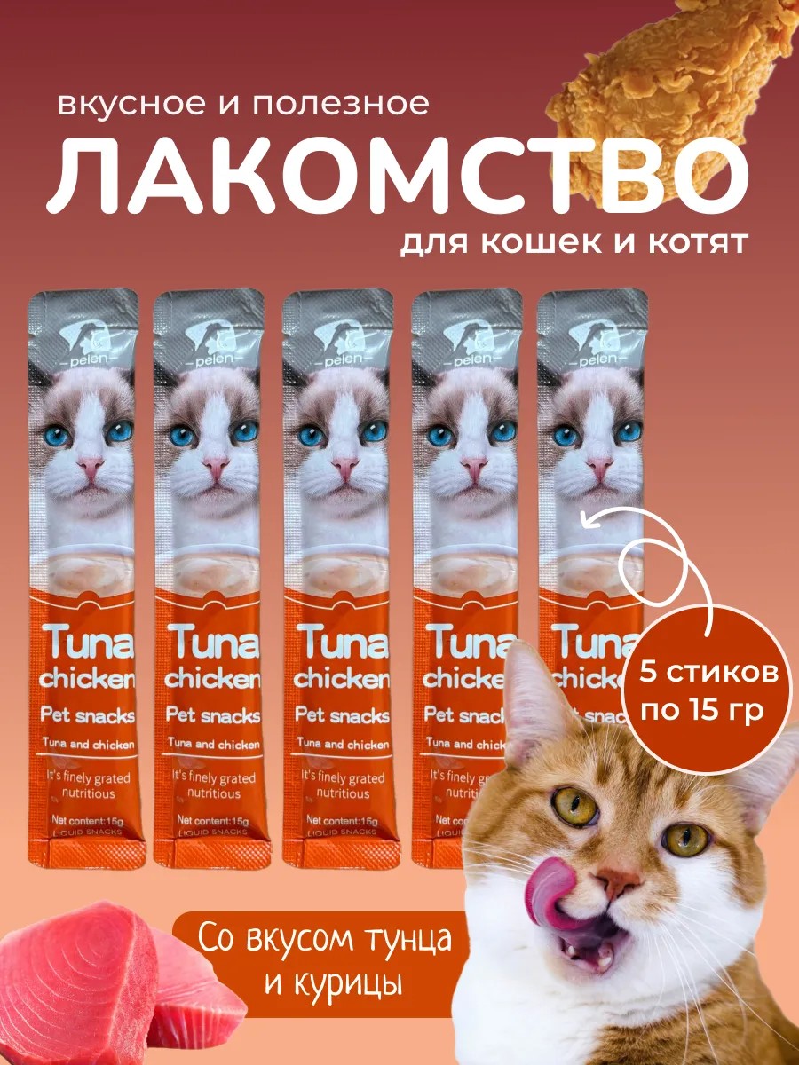 Крем-лакомство Peien - это вкусное и полезное лакомство для котят и взрослых кошек. Вкусняшки для животных изготовлены из отборных ингредиентов, которые по стандартам подходят для питания людей. Все продукты обогащены omega-3, таурином и витаминами. Влажный крем паштет для котов из курицы, тунца, креветки или лосося - источник легкоусвояемого белка. Натуральный кошачий жидкий крем лакомство содержит таурин для поддержания здоровья глаз. Содержат дневную норму omega-3 для здоровья и красоты кожи и шерсти. Витамины А, B1, В2, D3, B6 помогут любимому питомцу поддерживать активность и хорошее самочувствие в течении всего дня. Ваш котик полюбит такое угощение. Премиальный жидкий мясной корм НЕ СОДЕРЖИТ крахмал. Крахмал - дешёвый бесполезный наполнитель, который может быть даже вреден кастрированным и домашним кошкам, ведущим малоподвижный образ жизни. Нежное пюре можно использовать как аппетитный соус к сухому корму для кота с плохим аппетитом, чтобы замаскировать невкусное лекарство или просто побаловать любимую кошку. Кроме того, крем суп - это отличный способ показать свою любовь и заботу о питомце. Они помогают укрепить связь между хозяином и кошкой, а также могут использоваться в качестве награды за хорошее поведение или как маскировка лекарств. Рекомендация по употреблению: для взрослых кошек 4-6 пакетиков в день (в зависимости от размера и активности кошки), котятам с 4 месяцев 1-2 пакетика в день.