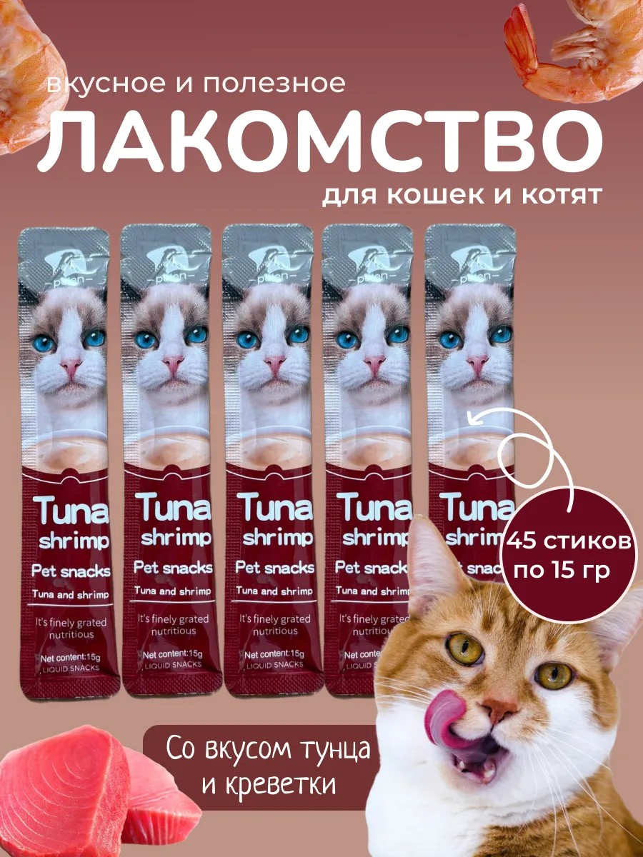 Крем суп лакомство для кошек тунец креветки 45 шт