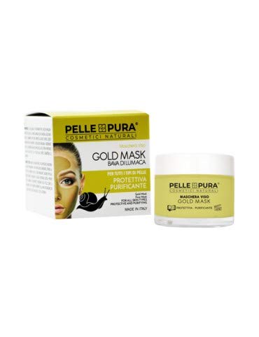 The Gold Mask is a facial treatment that improves the appearance of the skin, leaving it bright, clean, and radiant. The Gold Mask helps eliminate blackheads, acne impurities, and burns. This mask helps reactivate blood circulation while regenerating the skin. Once applied to the face, the mask penetrates deep into the pores, cleansing away dirt and combating impurities. Ingredients: Aqua, polyvinyl alcohol, kaolin, snail secretion filtrate, glycerin, aloe barbadensis leaf extract, chamomile extract, gold, allantoin, alumina magnesium oxide, hyaluronic acid, mentyl lactate, phenoxyethanol, ethylhexylglycerin, parfum (fragrance). INGREDIENTS Ingredients: aqua, polyvinyl alcohol, kaolin, snail secretion filtrate, glycerin, aloe barbadensis, chamomile recuptite, gold, allantoin, alumina magnesia oxide, hyaluronic acid, mentyl lactate, phenoxyethanol, ethylhexylglycerin, parfum.Once applied to the face, the mask penetrates deep into the pores, cleansing them of dirt and combating impurities. The Gold Mask helps eliminate blackheads, acne blemishes, and blemishes. This mask helps reactivate blood circulation, regenerating the skin. The Gold Mask is a facial treatment that improves the skin's appearance, leaving it bright, clean, and radiant. Viso Gold Mask: Protective and purifying for all skin types.Pelle Pura Masque Viso Gold Mask Bava de Lumaca - Protection - Purifiant Cosmétiques Naturels 50 mlDESCRIPTION DU PRODUIT DESCRIPTION DU PRODUIT La Gold Mask est un traitement pour le visage qui améliore l'aspect de la peau. La rend lumineuse, propre et radieuse. La Gold Mask sert à éliminer les points noirs, impuretés de l'acné et des brûlures. Ce masque aide à réactiver la circulation sanguine tout en régénérant la peau. La masque, une fois appliquée sur le visage, entre en profondeur dans les pores de la peau et se nettoie de la saleté, en combattant les impuretés. Ingrédients : Aqua, polyvinyl alcohol, kaolin, snail secretion filtrate, glycerin, aloe barbadensis, camomilla recutita, gold, allantoin, alumina magnésiium oxide, hyaluronic acid, mentyl lacate, phenoxyethanol, ethylhexylglycerin, parfum. INGRÉDIENTS Ingrédients : aqua, polyvinyl alcohol, kaolin, snail secretion filtrate, glycerin, aloe barbadensis, camomille récuptite, gold, allantoin, alumina magnésie oxide, hyaluronic acid, mentyl lactate, phenoxyethanol, ethylhexylglycerin, parfum.Le masque, une fois appliqué sur le visage, entre en profondeur dans les pores de la peau et les nettoyer de la saleté, en combattant les impuretés. La Gold Mask sert à éliminer les points noirs, les impuretés de l'acné et les brufolies. Ce masque aide à réactiver la circulation sanguine, régénérant la peau. La Gold Mask est un traitement pour le visage qui améliore l'aspect de la peau. Il le rend lumineux, propre et radieux. Masque Viso Gold Mask, Protection et Purifiant pour tous les types de peau.