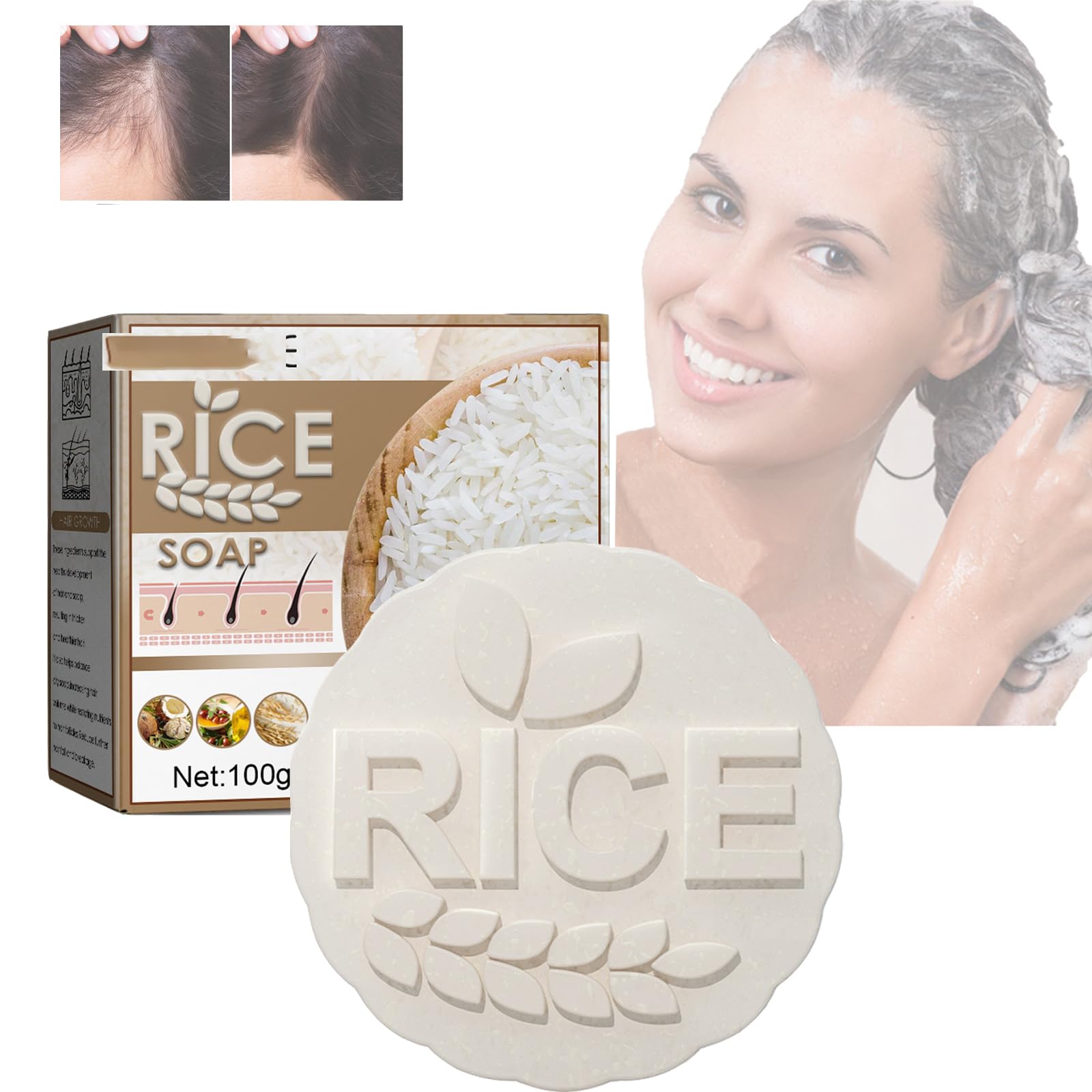 INSTRUCTIONS FOR USE Wet hair, lather with shampoo, massage for 5 to 8 minutes.[Usage] After thoroughly wetting your hair with water, lather with the rice shampoo bar and massage for 5 to 8 minutes. [Easy to use] Compact and lightweight, these shampoo bars are perfect for business trips, travel, and camping, helping you care for your hair without waste! [Improve hair quality] Rice soap effectively adds moisture and nutrients to your hair, nourishing it, hydrating your roots, and effectively preventing hair loss. It makes hair stronger, thicker, and healthier. [Cleanse the scalp] The anti-hair loss rice shampoo bar contains natural rice water to protect healthy hair and scalp growth, cleanse oil from the hair, moisturize and repair damaged hair, prevent hair loss, and improve dandruff problems. Natural Rice-Based Ingredients The gentle and rich ingredients of this hair growth shampoo soap improve scalp blood circulation, nourish hair, prevent hair loss, and promote natural hair growth.Pemarlis 100g Rice Barre de Shampooing, Barre De Shampoing, naturels savon de riz Pour Les Cheveux Clairsemés Et La Perte de Cheveux, Favorise efficacement la croissance des cheveuxDESCRIPTION DU PRODUIT MODE D'EMPLOI Mouiller les cheveux, faire mousser avec du shampooing, masser pendant 5 à 8 minutes.Usage Après avoir bien mouillé vos cheveux avec de l'eau, faites mousser vos cheveux avec le savon shampoing au riz et massez pendant 5 à 8 minutes. Easy to use Compact et léger, ces savons de shampooing sont parfaits pour les voyages d'affaires, les voyages et le camping, vous aidant à prendre soin de vos cheveux sans causer de gaspillage !. Iméliorer la qualité des cheveux Le savon de riz peut effectivement ajouter plus d'humidité et de nutriments à vos cheveux, nourrir vos cheveux, hydrater vos racines de cheveux et prévenir efficacement la perte de cheveux. Il rend les cheveux plus forts, plus épais et plus sains. Nettoyer le cuir chevelu Le savon shampooing au riz anti-chute contient de l'eau de riz naturelle pour protéger le développement sain des cheveux et du cuir chevelu, nettoyer l'huile des cheveux, hydrater et réparer les cheveux abîmés, prévenir la chute des cheveux et améliorer les problèmes de pellicules. Ingrédients naturels à base de riz Les ingrédients doux et riches du savon shampoing pour la croissance des cheveux améliorent la circulation sanguine du cuir chevelu, nourrissent les cheveux, préviennent la chute des cheveux et favorisent la croissance naturelle des cheveux.
